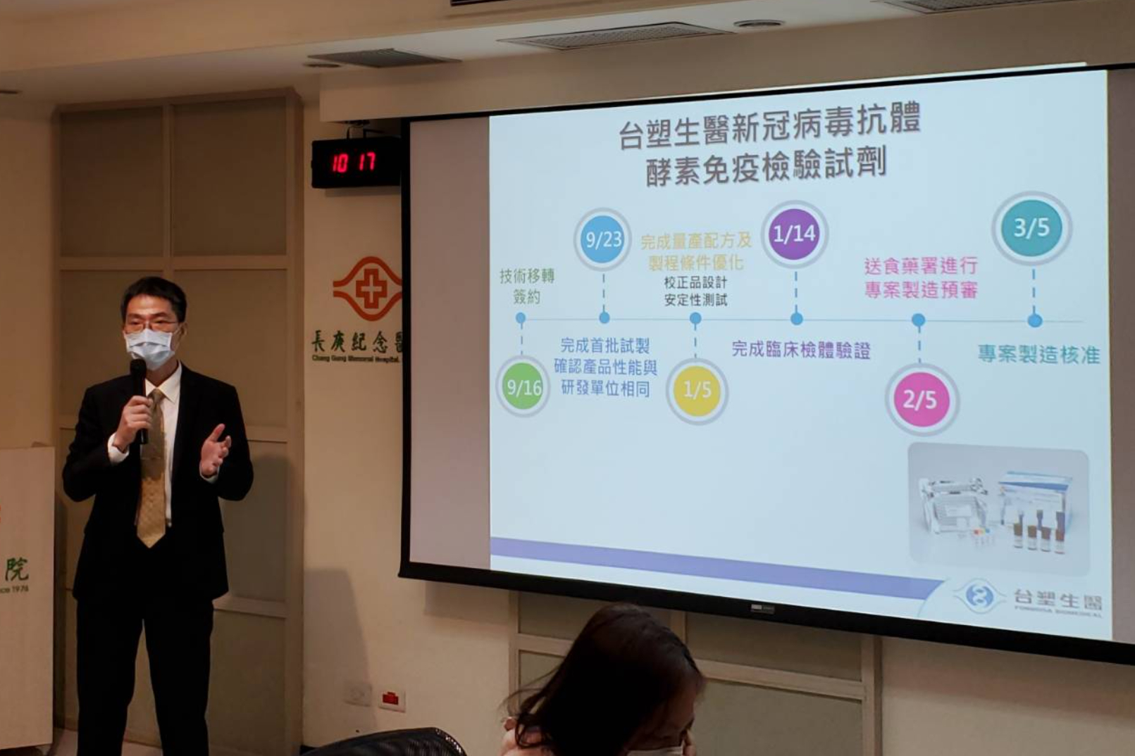 國內第一支由民營醫院研發的武漢肺炎(新冠肺炎)中和抗體檢測試劑成功通過衛福部認證,試劑認證字號為「防疫專案核准製造第1106803303號」試劑是在政府支持下,由長庚大學及長庚醫院團隊成功研發,接下來由台塑生醫製造,該試劑最大作用是可以檢測疫苗是否有效,是推動疫苗護照的關鍵步驟。