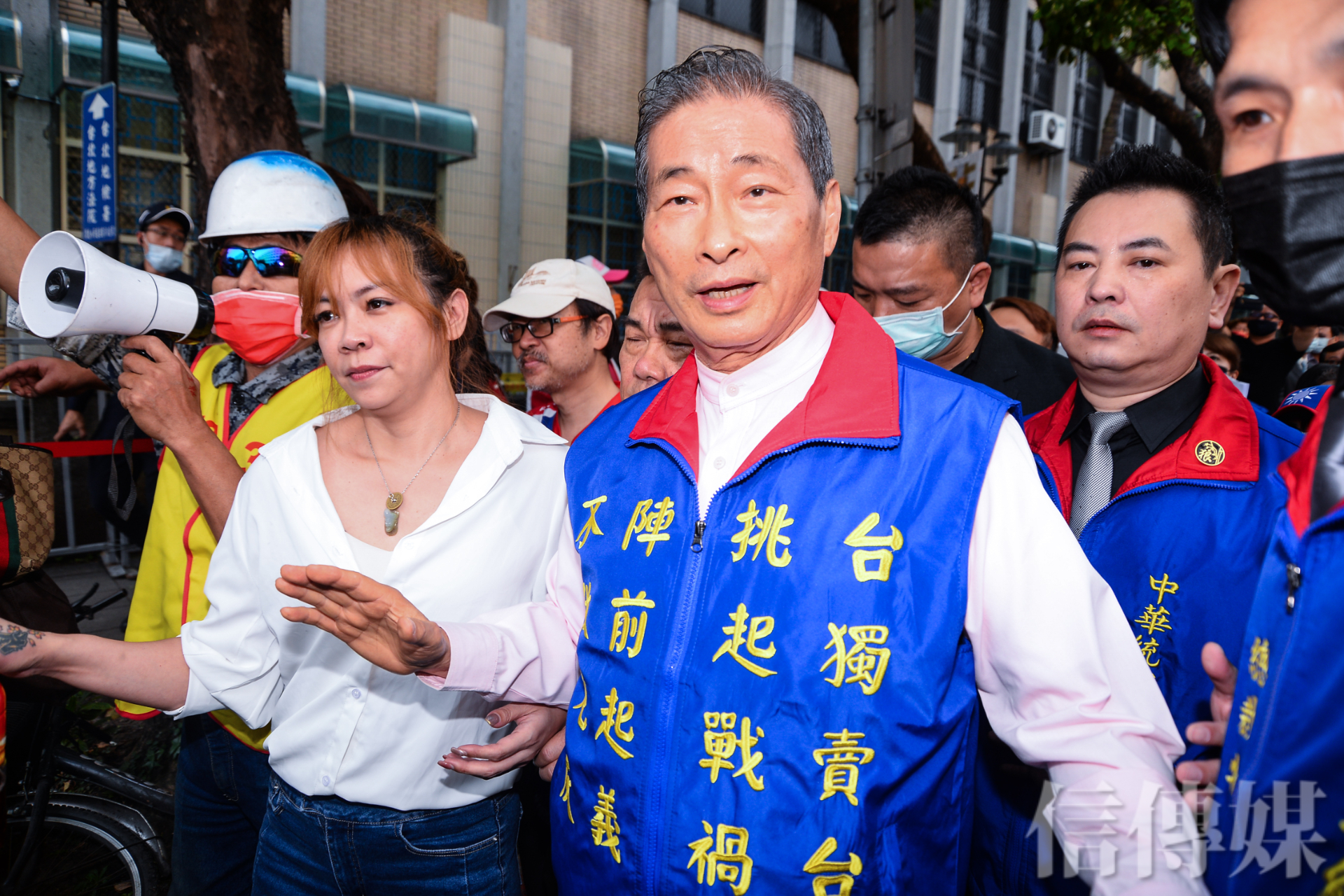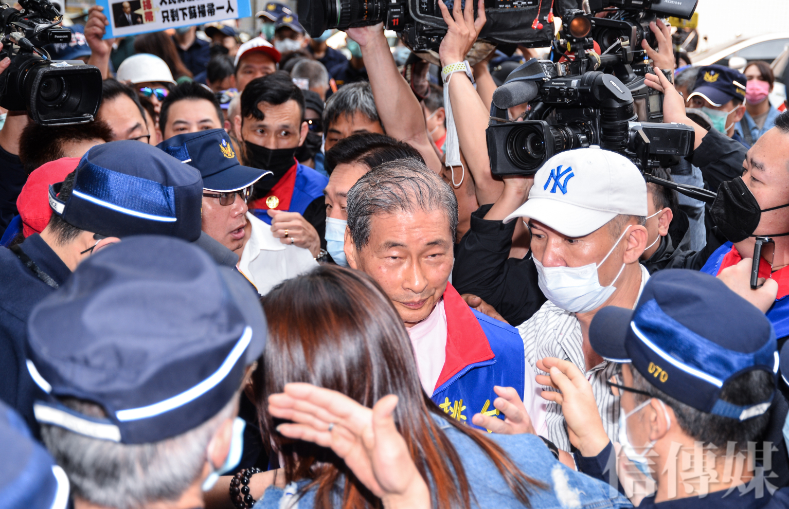 大約上午近9點,張安樂身穿「台獨賣台、挑起戰禍、陣前起義、不做砲灰」背心抵達高檢署,身旁圍繞著上百名支持者,不斷高喊「總裁加油!」,他在步入地檢署前高喊:「紅色隊伍就是要把中國人找回來!」