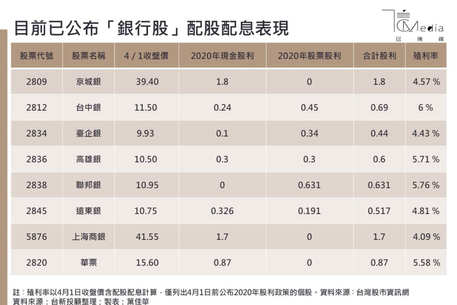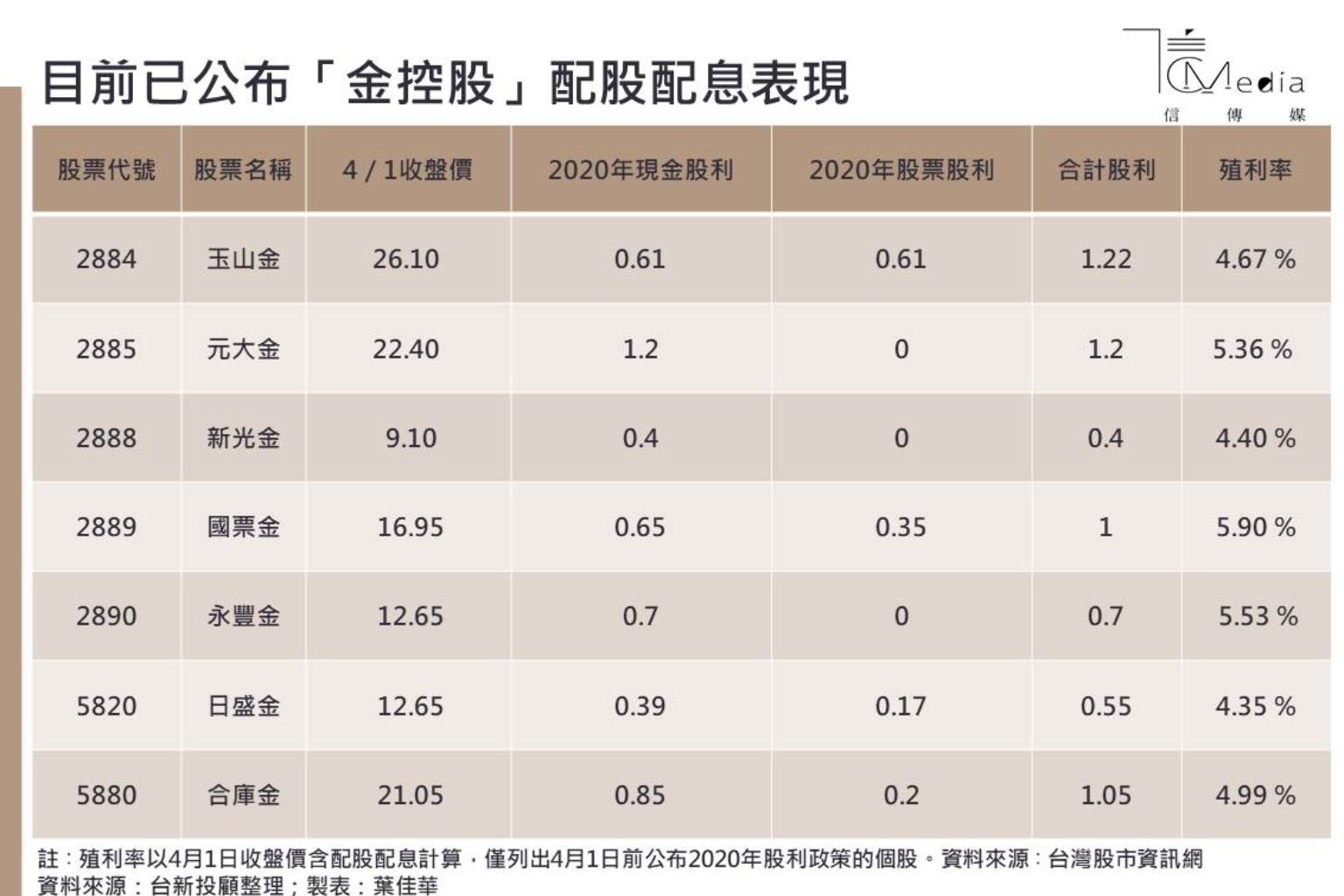 而金控公司目前則已有7家金控公司公告去年的股利政策,目前殖利率在5%以上有永豐金、元大金、國票金;至於銀行股,包括高雄銀、聯邦銀的殖利率也都站在5%之上。