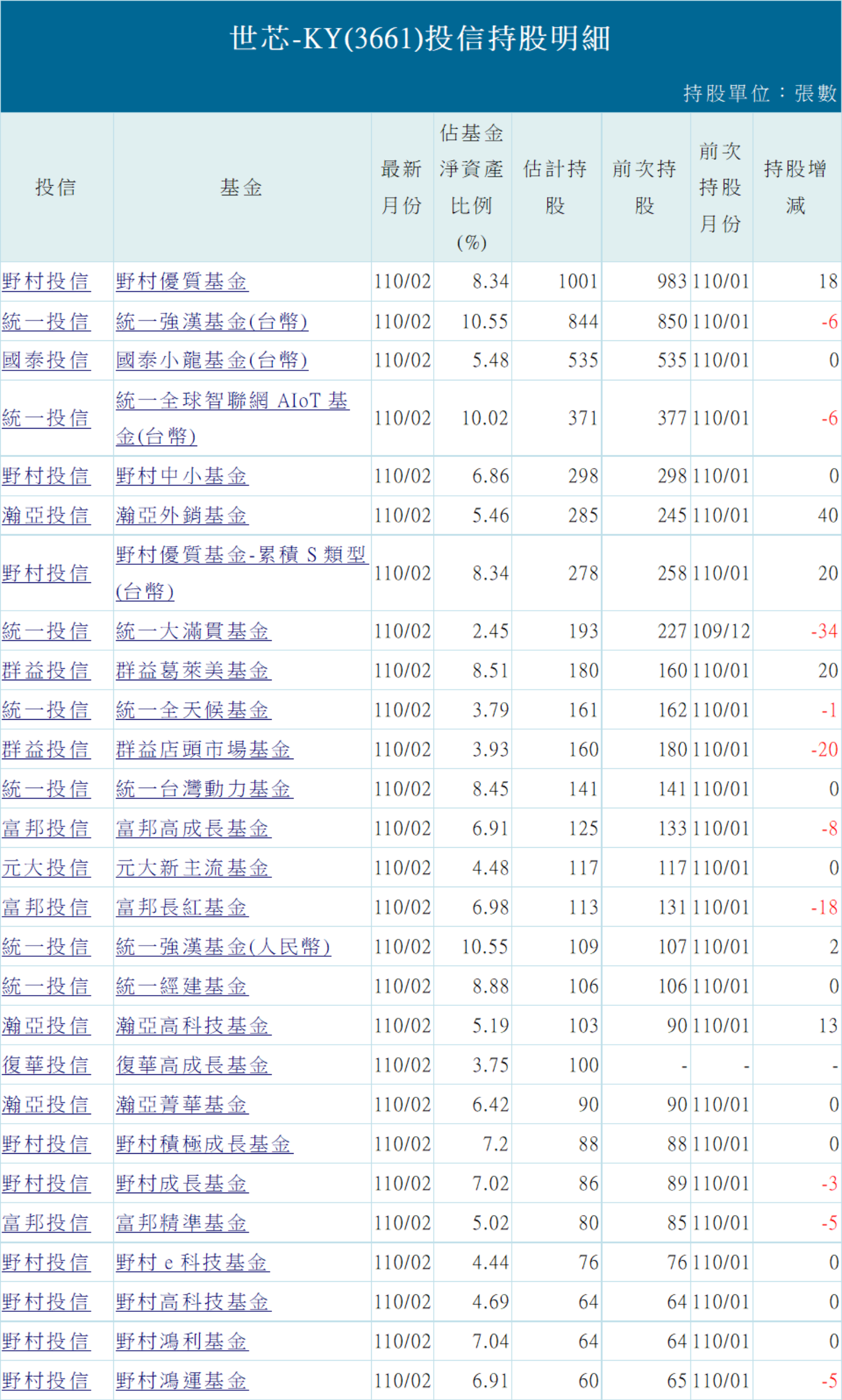 世芯資本額7億元,截至13日法人持股仍有65977張,等於將近95%持股在法人手中,其中外資持股56362張,投信8823張。以截至2月份投信持股明細來看,不少投信都有持股,統一與野村持股也不少,3月份有沒有新的變化,就不得而知。觀察投信持有世芯的成本,大約落在400至500元左右,世芯13日跌停價658元,投信仍是獲利的。