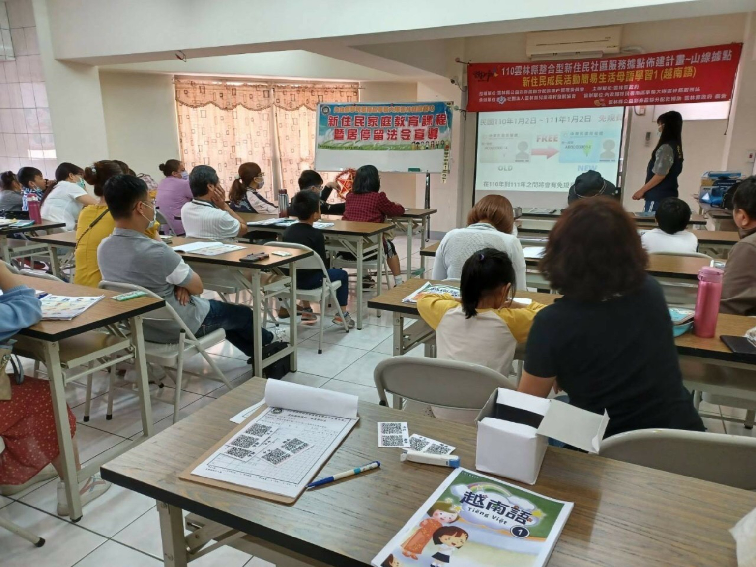 雲林縣服務站主任黃玟晸表示,移民署雲林縣服務站每個月舉辦的家庭教育暨法令宣導課程,是為了幫助新住民更快適應在台的新生活。ㄑ16日除宣導移民署今年度開始的新式統一證號換發政策外,也以越南語海報文宣培養新住民們正確的防疫觀念及措施,希望新住民家庭們都能夠在臺灣安居樂業,成長茁壯。
