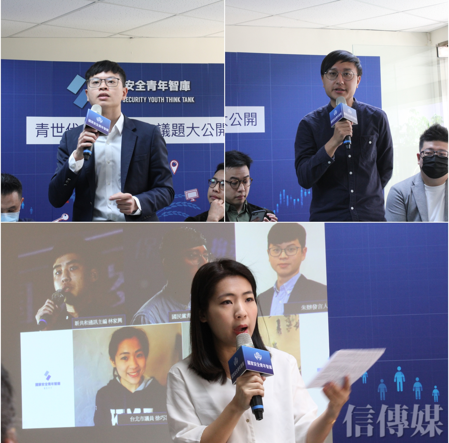 國民黨市議員徐巧芯發起成立「國家安全青年智庫」,今天與智庫召集人國民黨青年團總團長陳柏翰,以及智庫共同發起人:朱立倫辦公室發言人凌濤、新共和通訊主編林家興、國民黨松山區黨部委員周皜臣、國民黨青年要角高毓安共同召開成立記者會。現場並邀請到立法委員陳以信、前新北市政府經發局長施威全、淡江戰略所副教授暨前陸委會副主委黃介正給予指導。