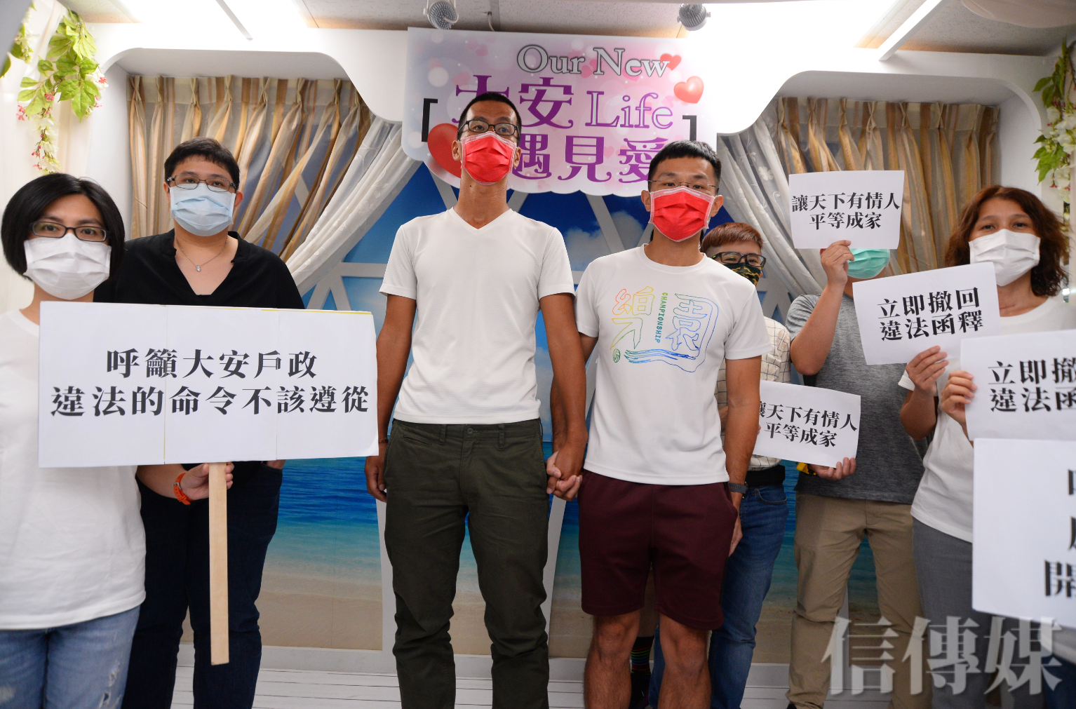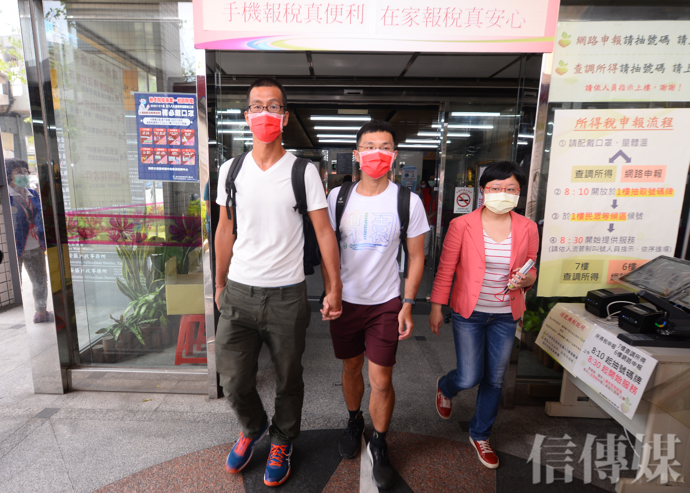 繼昨(6)日台北高等行政法院判決同志伴侶「信奇與阿古」登記結婚勝訴,成為第一對在台成功合法登記結婚的跨國同性伴侶之後,伴侶盟今(7)陪同「阿樹與AZ」這對本國籍與日籍同性伴侶,到台北市大安戶政事務所辦理同婚登記。