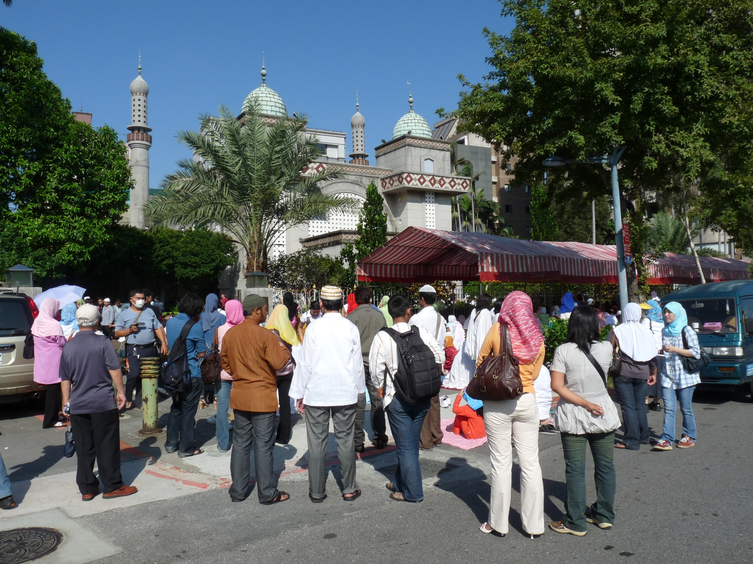 1960 年落成的「台北清真寺」,一直以來都是穆斯林在台北聚集的重要場所,譚雲福指出,近年因來台的穆斯林移工人數增長不少,在空間有限的情況下,大部分移工在開齋節當天會轉往台北車站活動,但清真寺仍會舉行禮拜儀式。民眾如有意在開齋節活動期間來訪,可隨信眾進行簡單的洗淨過程後,赤足進入清真寺內部參與活動。過程中,只要遵從男女分區、安靜觀禮即可。