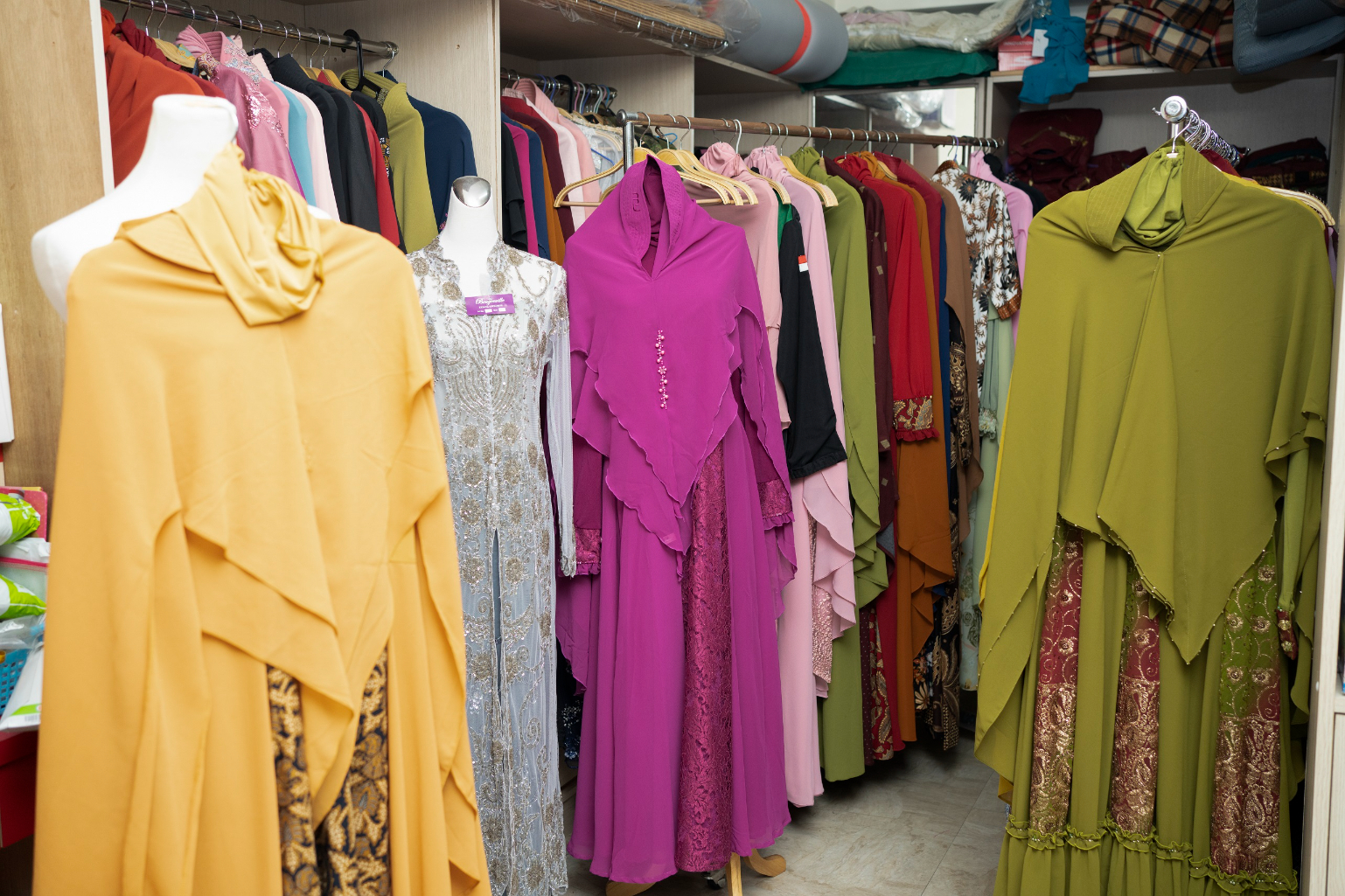 因為信仰的規範,服飾也成了穆斯林明顯的文化特色之一。譚雲福指出,為了包覆在信仰中認為有情慾象徵的毛髮,穆斯林女性多半得穿戴頭巾,而頭巾的包覆程度,則隨不同時期或地區而有所不同。穆斯林女性除了在進行禱告儀式時得穿上純白的服裝,在其他場合中,她們的服飾印花和配色,其實相當具有變化性,無論是素色布匹,或是繽紛的緹花織布,都各有風情,而每一個時期流行的花色也有所不同。由「Salon Ria」髮廊兼營的穆斯林服飾店「Butik Ria Taipei」,現場展示的品項不少,有意購買的民眾可在會說中文的店員協助下試穿,藉由穿著的實際體驗,更加了解穆斯林的服飾之美。