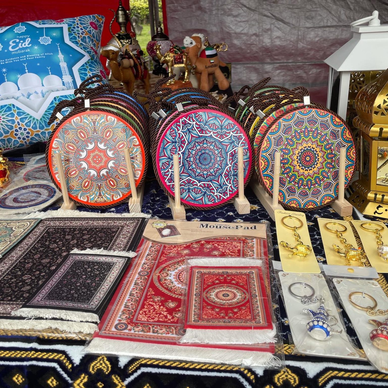 伊斯蘭教因為禁絕偶像崇拜,所以生活器物上多以花朵植物或抽象幾何紋樣進行裝飾。「杜拜皇宮Dubai Palace」販售的商品多自土耳其、杜拜、阿拉伯聯合大公國進口,在這裡可以找到飾有精美紋樣的餐墊、茶具組、香爐和地毯。不同的波紋、半圓及各式圖樣,彼此堆疊交錯,規律的排列組合搭配繽紛色彩,組成令人驚豔不已的圖紋,不妨選購幾樣商品,讓充滿穆斯林文化美感的工藝精品美化居家空間。