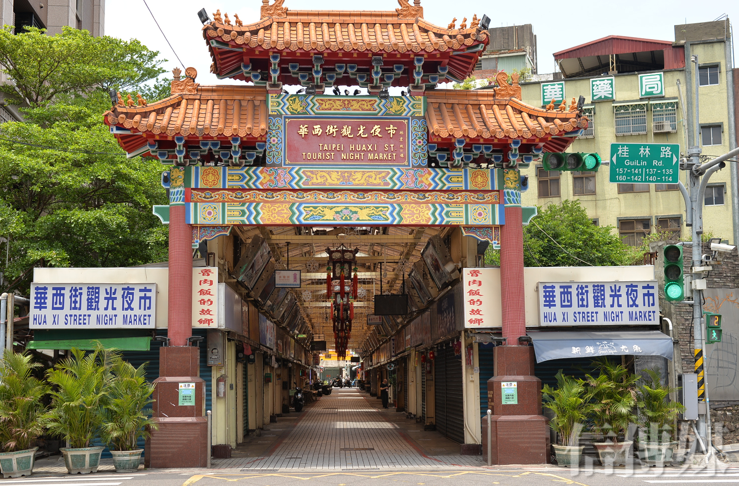 萬華信仰中心龍山寺門前人煙稀少,廣場前聚集的民眾也不見人影,西園路上整排餐廳、服飾店、鐘錶店全部休業,大家都希望趕快度過疫情(攝影/鄭國強)。