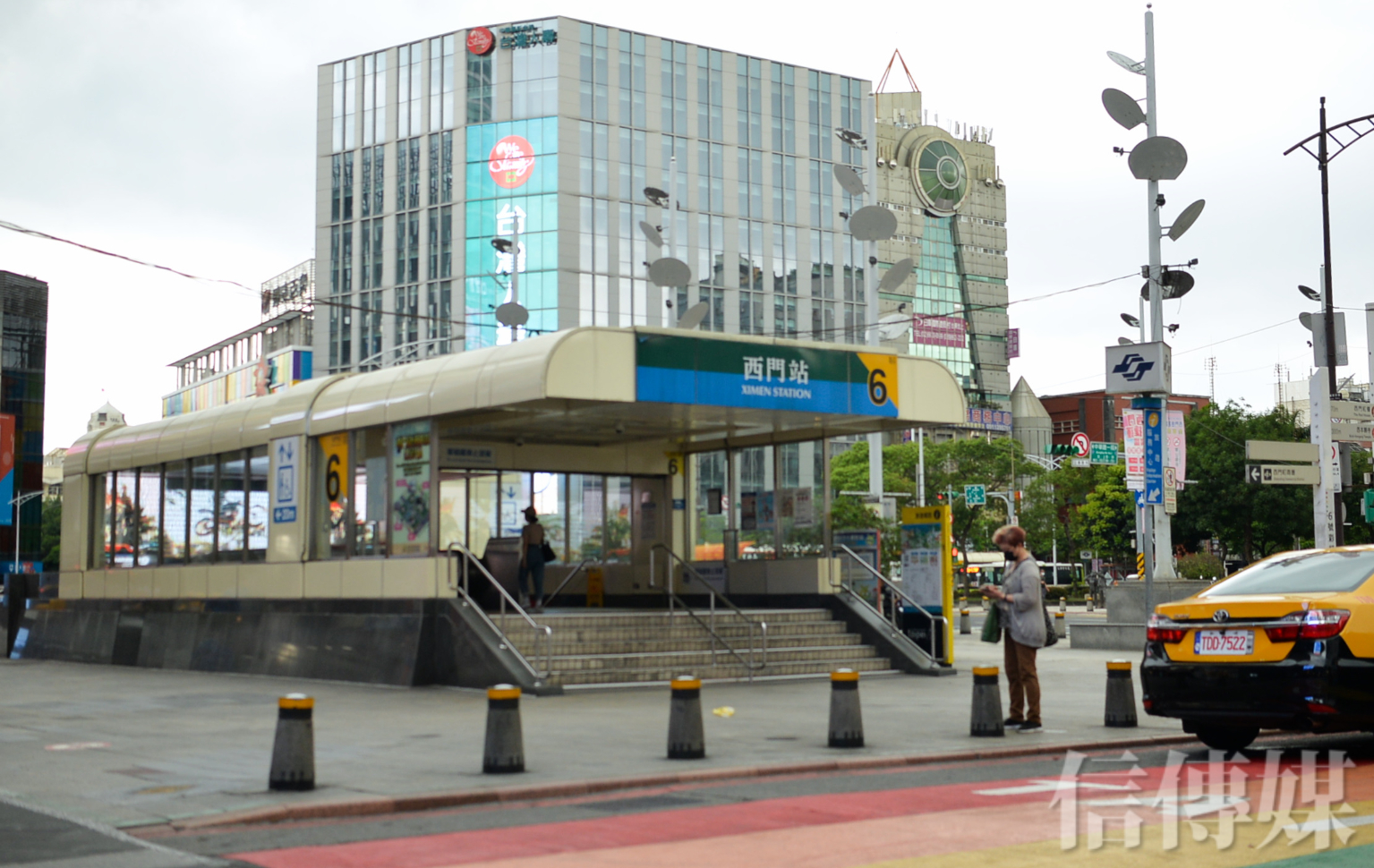 平時遊客出入頻繁的捷運西門站6號出口呈現淨空的狀態,三五分鐘內也頂多零星的乘客出入。