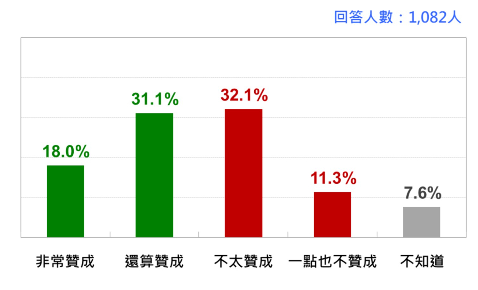 對於新冠疫苗的接種,民調問「面對這次疫情危機,只要有合格疫苗,不管是哪一國的,都願意立刻接種。」請問您是否贊成?」結果發現:18%非常贊成,31.1%還算贊成,32.1%不太贊成,11.3%一點也不贊成,7.6%沒意見、不知道、拒答。