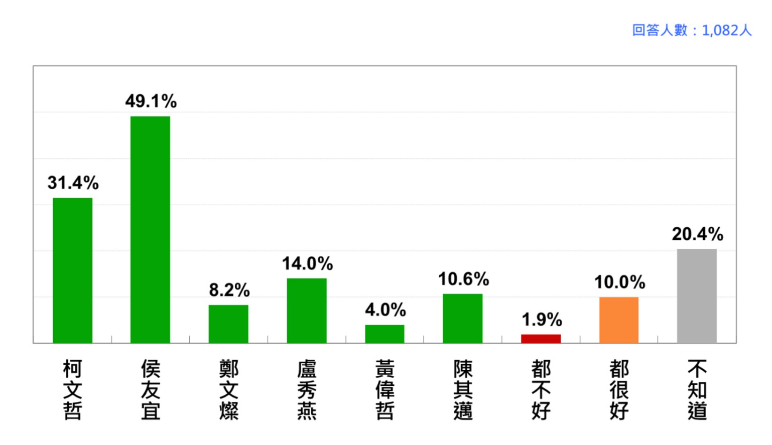 游盈隆分析,首先,在政黨傾向方面,不論哪一黨支持者,認為新北市長侯友宜表現較好的比例都最高,同時,中性選民(獨立選民)也有同樣的認知。