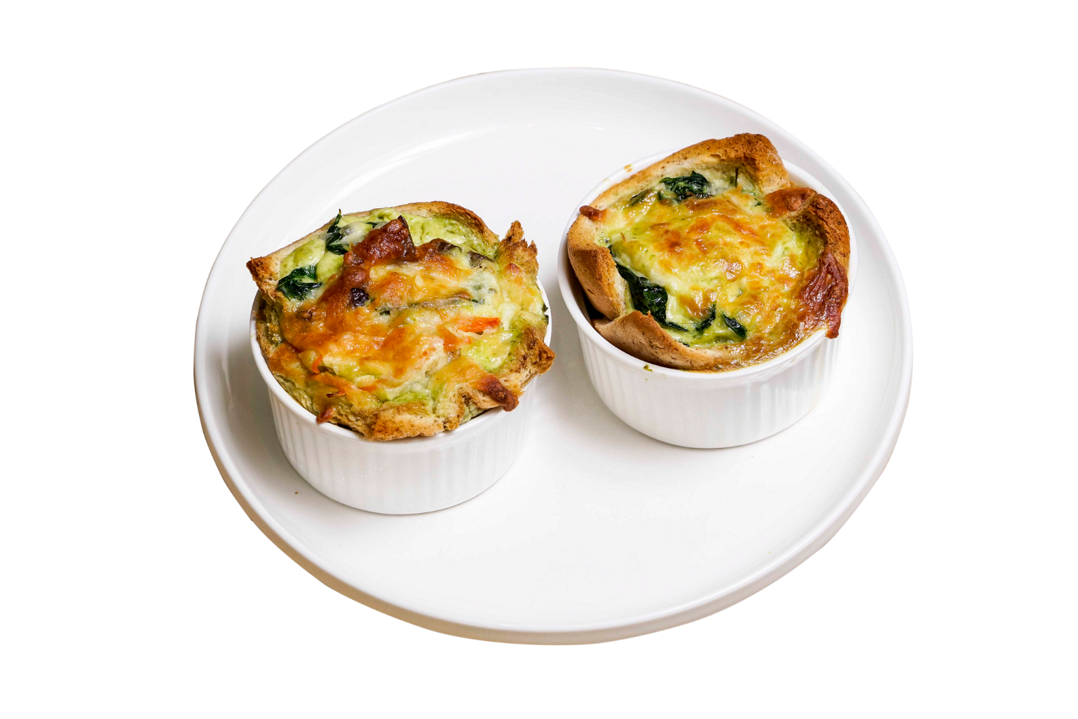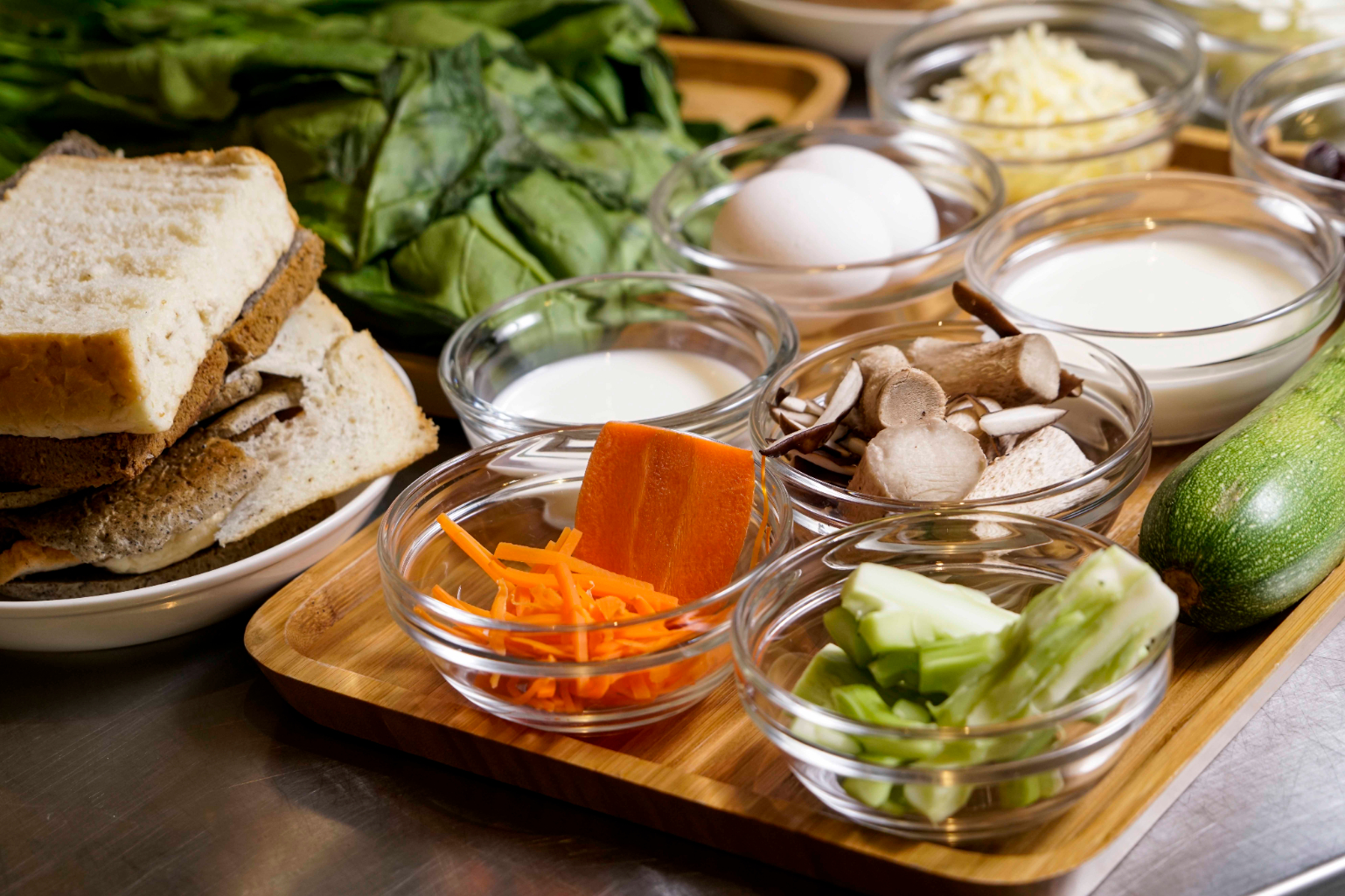 延續續食的精神,方億傑特地挑選兩道午茶餐點,讓即使零下廚經驗的人都能輕鬆上手,「過年過節從不會缺席的臘肉、香腸、焢肉等肉類,不是一連數日出現在餐桌上『銷庫存』,就是長期冰封在冰箱的『長年菜』,而容易因為運送碰撞或貯存不便,造成外表乾癟、破損等瑕疵的蔬果,雖然品質無虞,卻不討喜。第一道『續食鹹派』便是將剩餘肉類、醜蔬果重新和吐司邊組合,用一樣的食材玩出不一樣的滋味。」