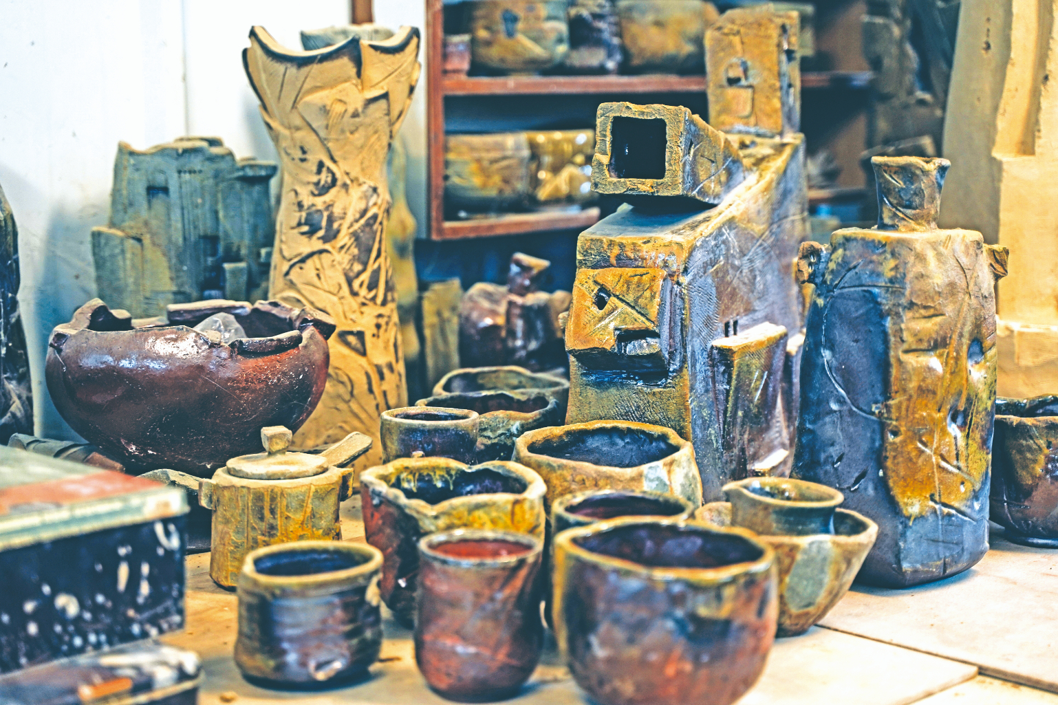 驅車開進苗栗縣銅鑼鄉的深山裡,山頭上大冠鷲在天際盤旋,穿越重重竹林,映入眼簾是間靜謐的小木屋,一旁是吳水沂一手設計打造的窯,這裡是他的工作室。10年前從潭子搬到這處秘境,讓吳水沂的創作環境更接近柴燒追求的「順應自然」,也不用擔心燒窯時,煙囪竄出的火舌嚇壞鄰居。這個地方並不適合居住,氣候極端,土地貧瘠,吳水沂在這裡創作時,深刻的體悟到人身為這片天地的「過客」,尊重且順應自然,是柴燒的必修課程。