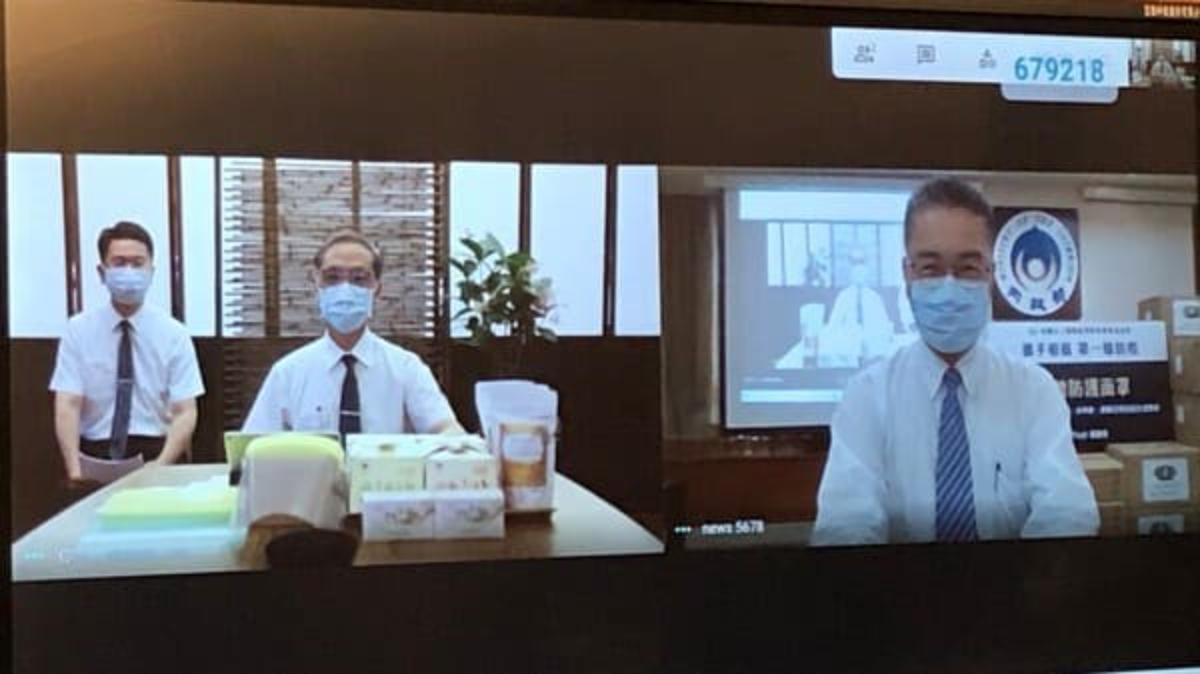 慈濟捐贈一批物資給內政部,6月2日由內政部長徐國勇(右)在台北視訊連線花蓮慈濟基金會顏博文執行長(中),希望一起守護國人。(圖片來源/慈濟基金會提供)