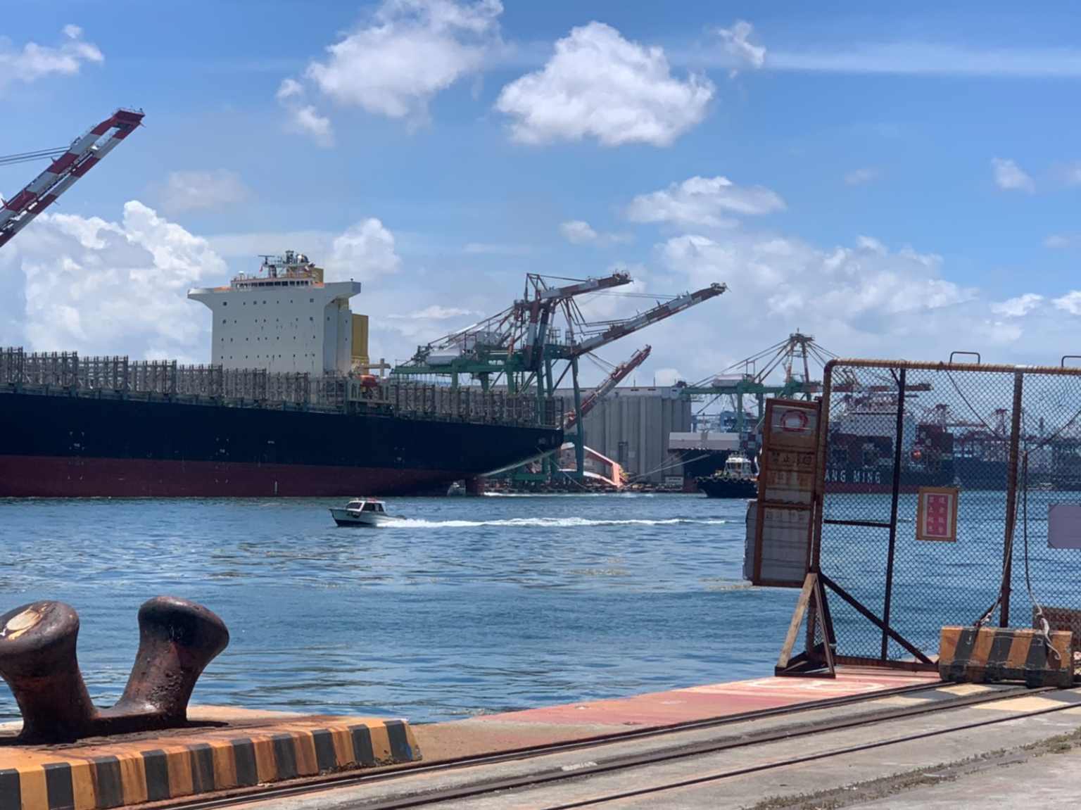 今(3)日中午11時30左右高雄港發生倒塌事故,一艘屬於OOCL航運公司的大型貨櫃輪,撞上陽明海運70號碼頭的起重機,導致兩部塔式起重機倒塌。