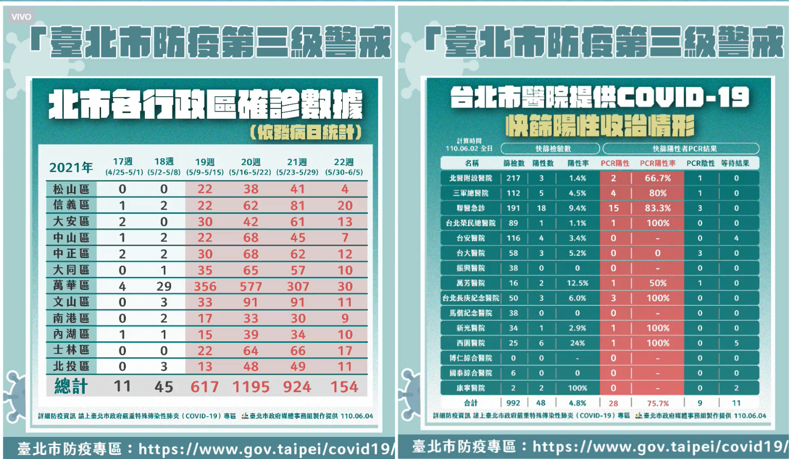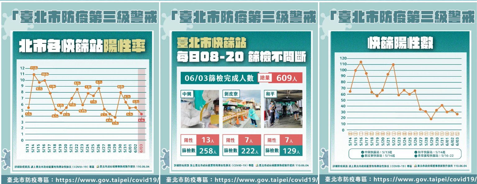 另一方面,北市20個急救責任醫院將每日統計各院快篩陽性數據,作為北市府監控、判讀疫情趨勢的根據。