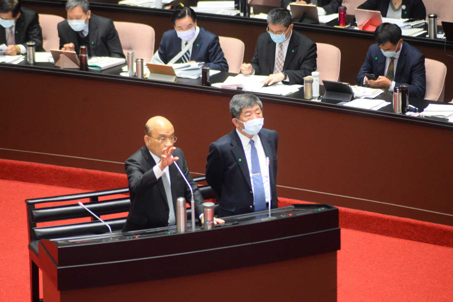 不過,朝野立委都將質詢火力放在疫苗議題,蘇貞昌報告時強調,台灣預計到8月底會有約1000萬劑疫苗到位,政府已做好大量施打疫苗的規畫及準備。