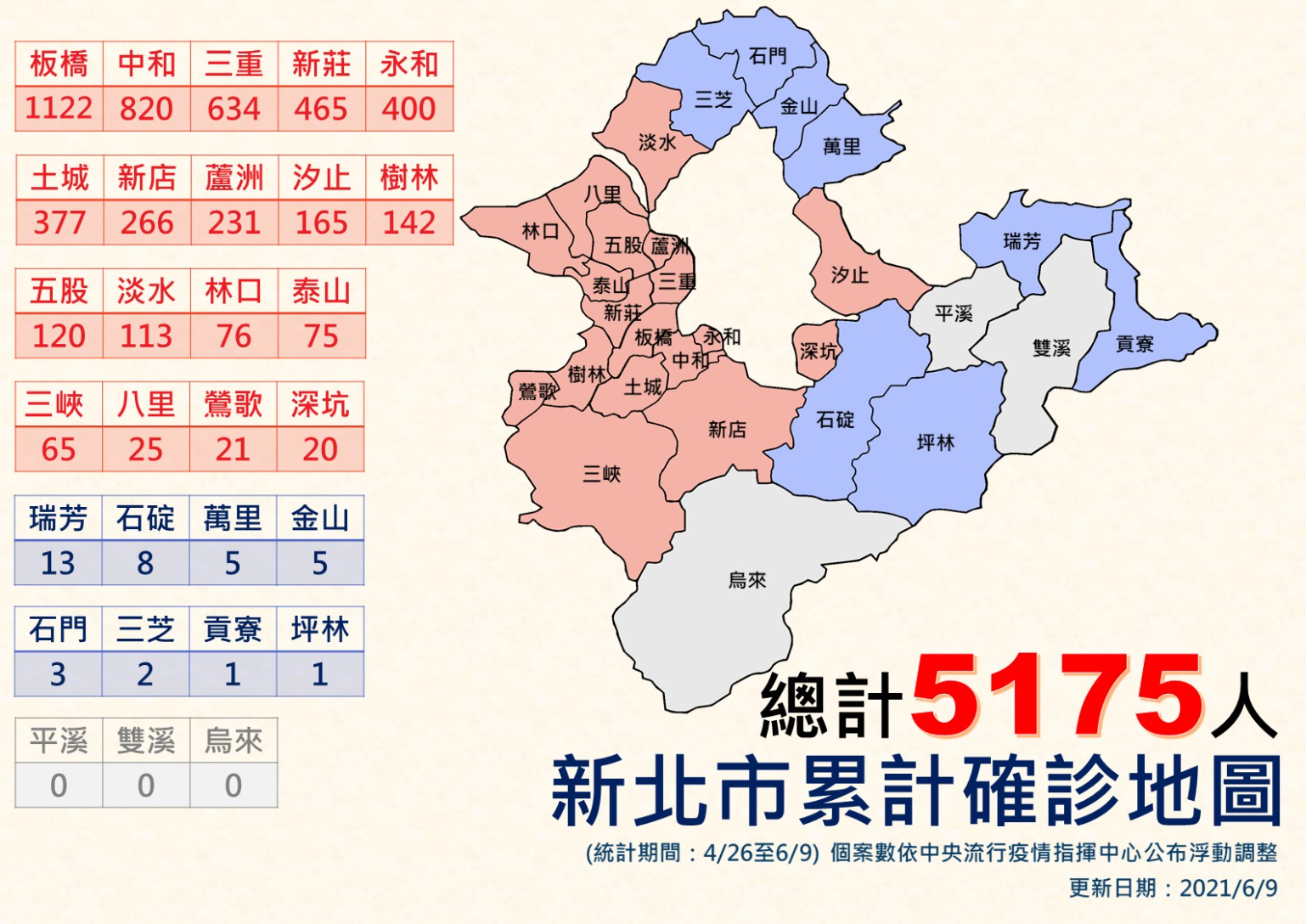 中央流行疫情指揮中心宣布,全台新增274例本土確診案例,且有25人死亡,新北市確診人數162例,仍然是全台最多,總累積5175例確診,列管為居家隔離者4515人。