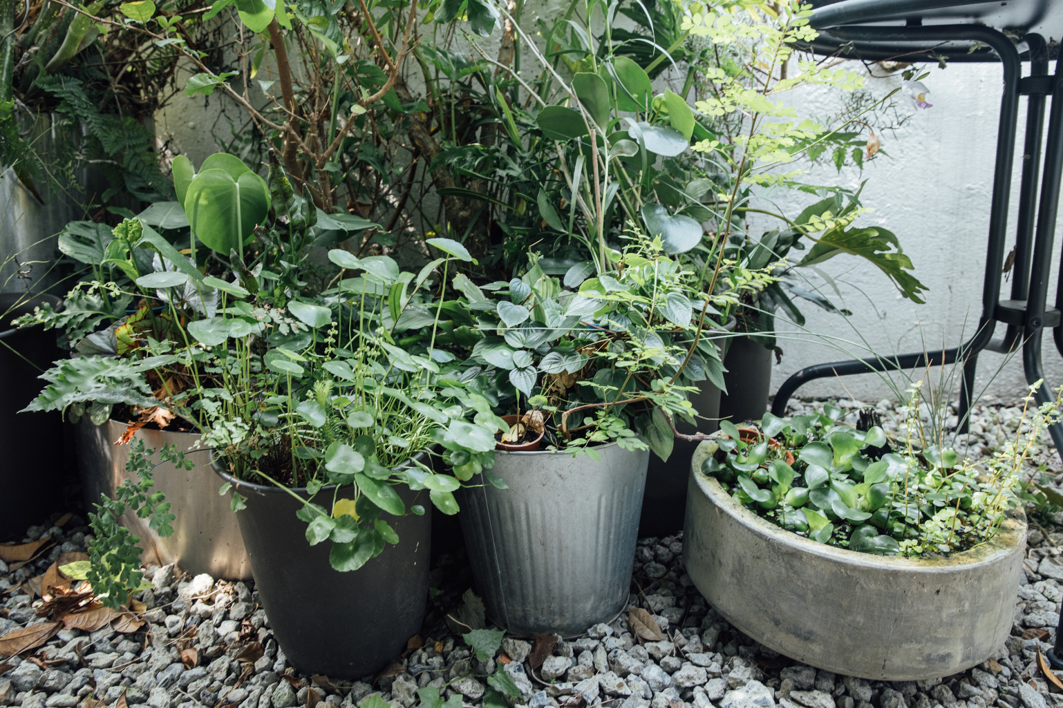 當初吳書原在設計自家陽台時,只規畫了6 盆植物,結果看起來相當稀疏,這才體會現實環境不像平面圖一般,設計了盆栽就能享受綠蔭,隨著對植物特性的了解加深,慢慢調整後才向模仿山林的狀態拓展。「崇尚自然、不裝模作樣、不追求特別的植物種類,是我理想中的植物氛圍。」吳書原以有蔓延特性的蕨類打底,延伸出大面積的綠,搭配迷迭香、左手香、檸檬馬鞭草等香草植物,能防蚊蟲,還能隨時摘下葉片佐茶或佐酒。