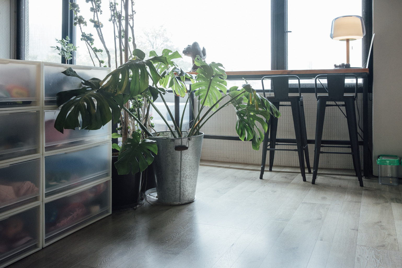 室內的綠意也從一開始就在吳書原的規畫之內,「當初找房子時很重視前後景觀,希望盡可能融入山跟溪,像我家後面是陽明山,前面是外雙溪,加上室內幾盆綠色植物,有種綠意流動通透的一致感受。」在空間有限的室內,吳書原建議選擇一般常綠灌木,如孔雀木、龜背竹,一株就能長出二、三十枝葉片,形成繁盛蓊鬱的景色。