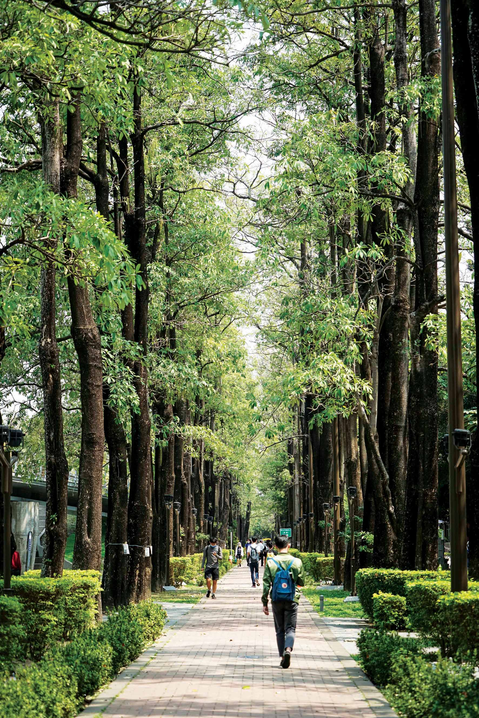 除了佛教四大聖樹,中興校園裡還有許多有趣的熱帶雨林植物,例如圖書館旁的猴面果,泰國人會以其木材做成去角質的磨砂粉,森林系館後方的墨水樹則是早期用來製作染劑的原料,而從西側大學北路的側門進入,高達五層樓的耳豆樹就像一頂大雨傘,春雨過後長新芽時,是最美的時刻。