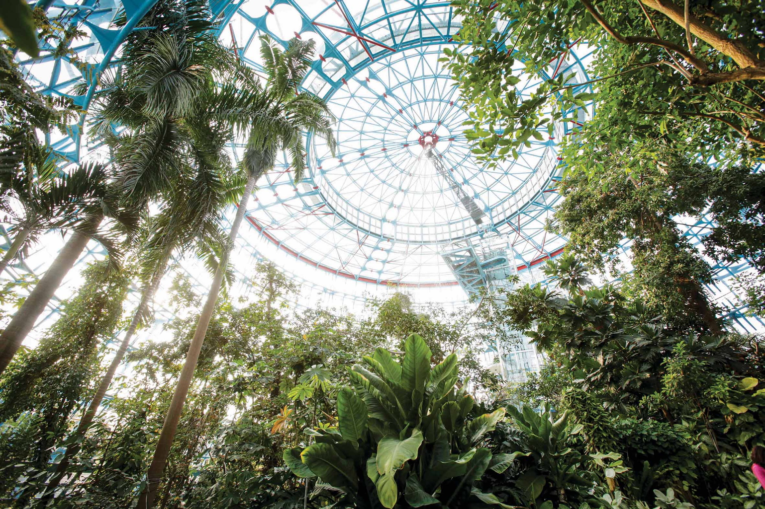 提及台中著名的自然科學博物館,總會立即想到各種有趣好玩的科學展品,以及精采的恐龍展示區,其實位於場館對面的植物園也很豐富,是台灣第一座以熱帶雨林為主題的植物園,占地4.5公頃,中央有一座高達40公尺的玻璃溫室,裡頭模擬了熱帶雨林的環境特性,豐沛水氣滋養了400多種雨林植物,包括喬木、灌木、草本、蕨類等,不必擁有專業植物背景,抱持著觀賞的心情,也可以在這裡找到樂趣。