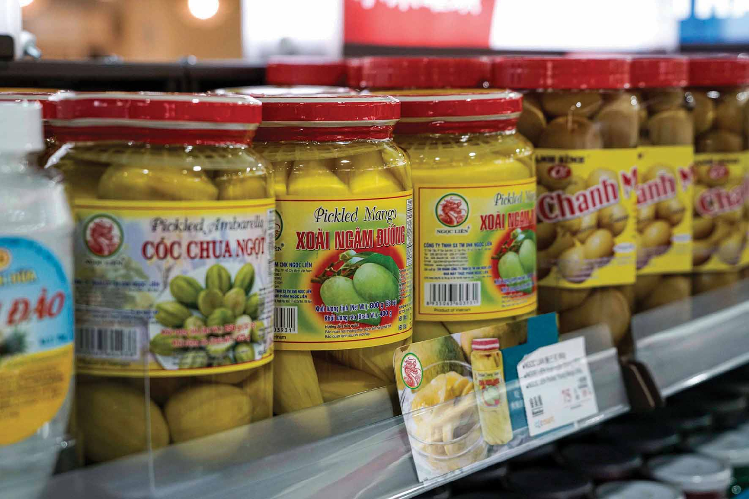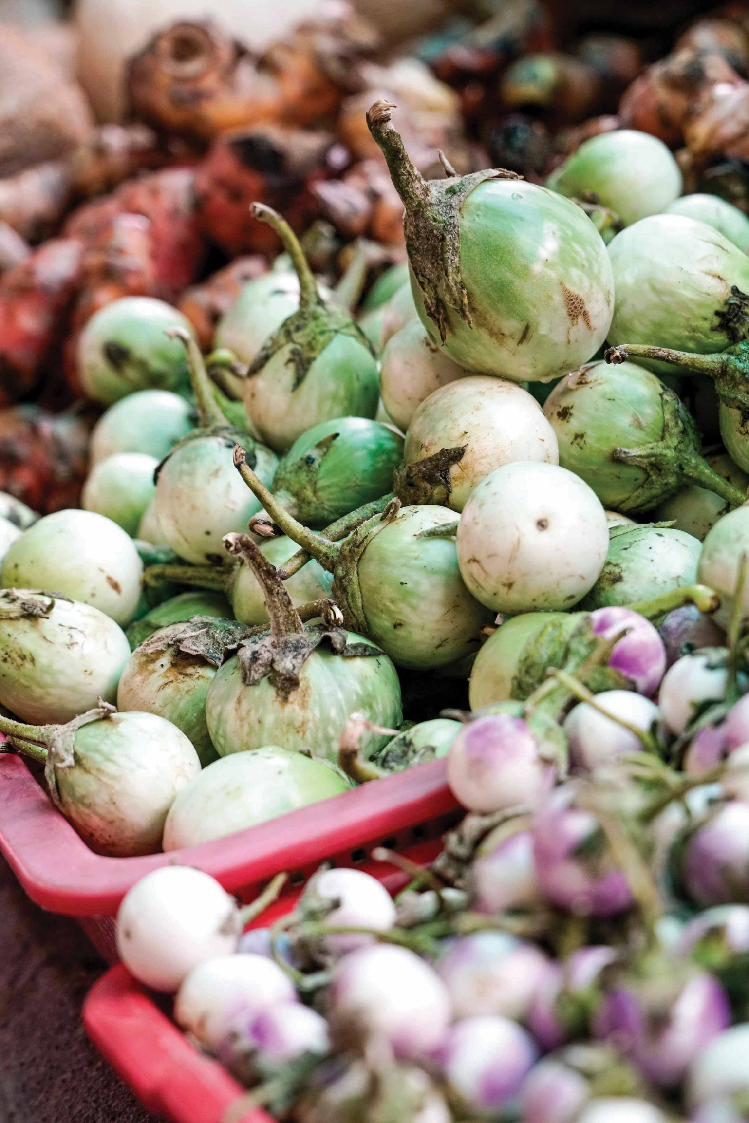 王瑞閔建議可從廣場旁的成功路開始逛起,這裡除了有各種越南小吃,還有一家必逛菜攤,琳琅滿目的蔬菜和香料一字排開,除了叫得出名字的香茅、南薑、芭蕉花、小圓茄、空心菜等,其他一概十分陌生。在來自東南亞的店員解說下,才知道同一種食材,到了不同國家的人手上,會有不同料理方式,像是泰國綠咖哩中常見的小圓茄,到了越南人的手裡,會當作泡菜一樣醃漬後食用,滋味酸辣脆爽,十分開胃。