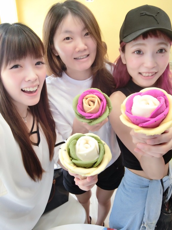 一朵漂亮的玫瑰花,是來自匈牙利布達佩斯的創意,三層的花瓣分別代表三種不同的口味,第一瓣可能是一口的酸甜、濃郁的百香果繞在口中,酸甜的桑葚。這些都是七年級的張慈慧向「西方」取經,引進來自匈牙利布達佩斯的技術,加上她親手調教的成果。