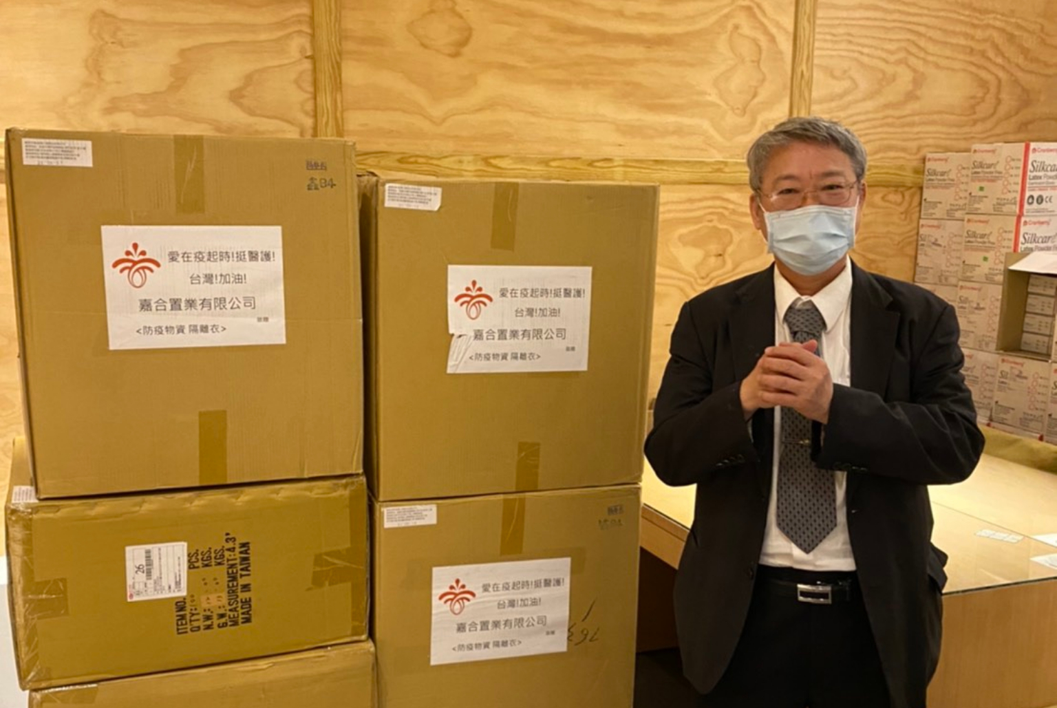 嘉合置業總經理唐小雨表示,為了完成抗疫物資的供應,她迅速動員並整合公司的所有相關部門積極投入,在短時間內籌購大量防疫物資,以提供第一線防疫人員的保護需要。