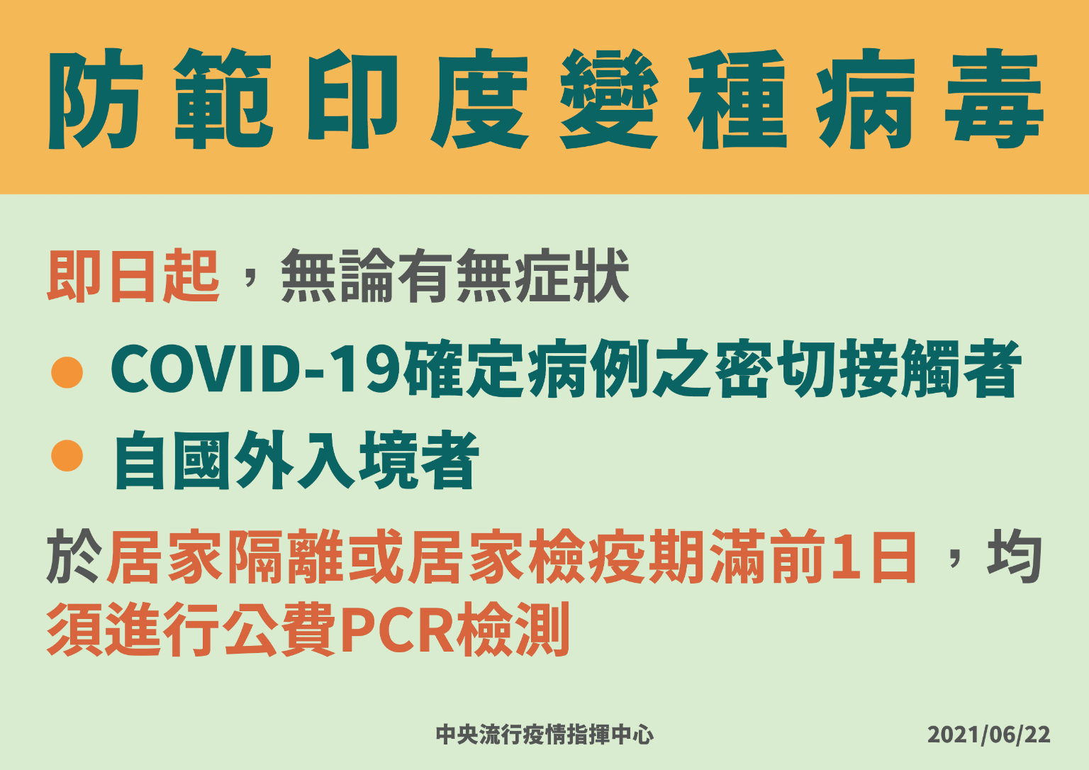 陳時中表示,今日新增1例境外移入個案(案14257)為本國籍50多歲男性,長期於印尼工作,6月20日返臺,持有搭機前3日內檢驗陰性報告,入境後至檢疫旅館居家檢疫,6月21日出現喉嚨痛等症狀,由衛生單位安排就醫採檢,於今日確診。個案檢疫期間無接觸他人,故無框列接觸者。