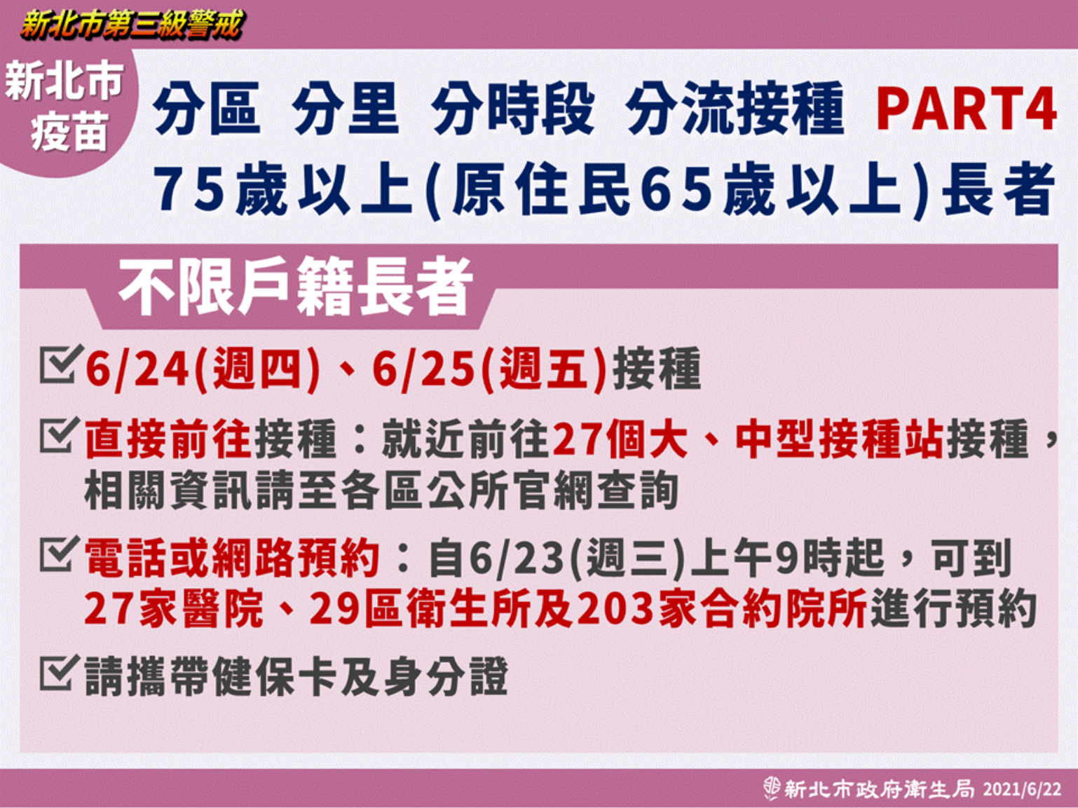 第四波疫苗接種,不限設籍的75歲以上長輩