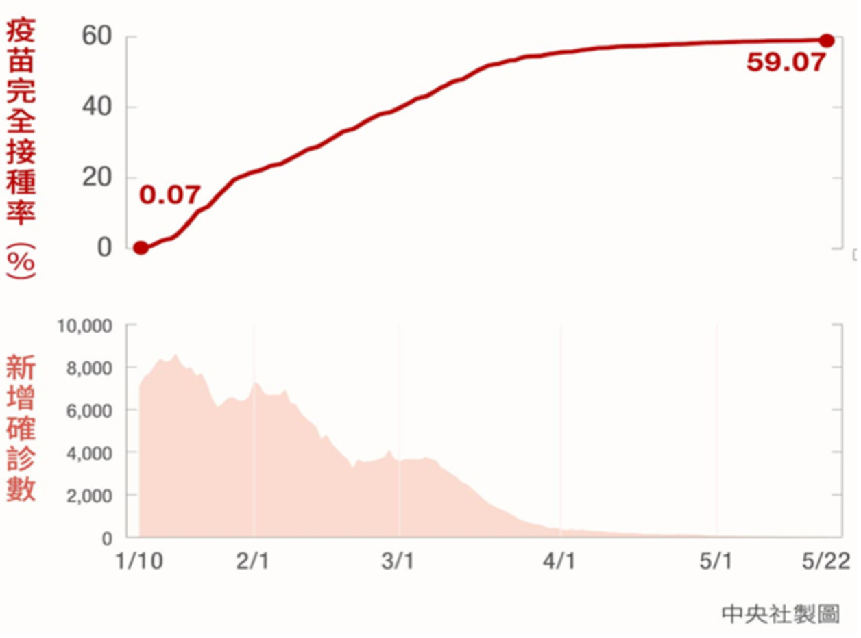 與此同時,以色列境內也邁向全面解封,越來越多人前往公共場所活動,回歸正常生活。由此可見有效疫苗的接種對於新冠感染率與重症率和死亡率都有顯著的效應。