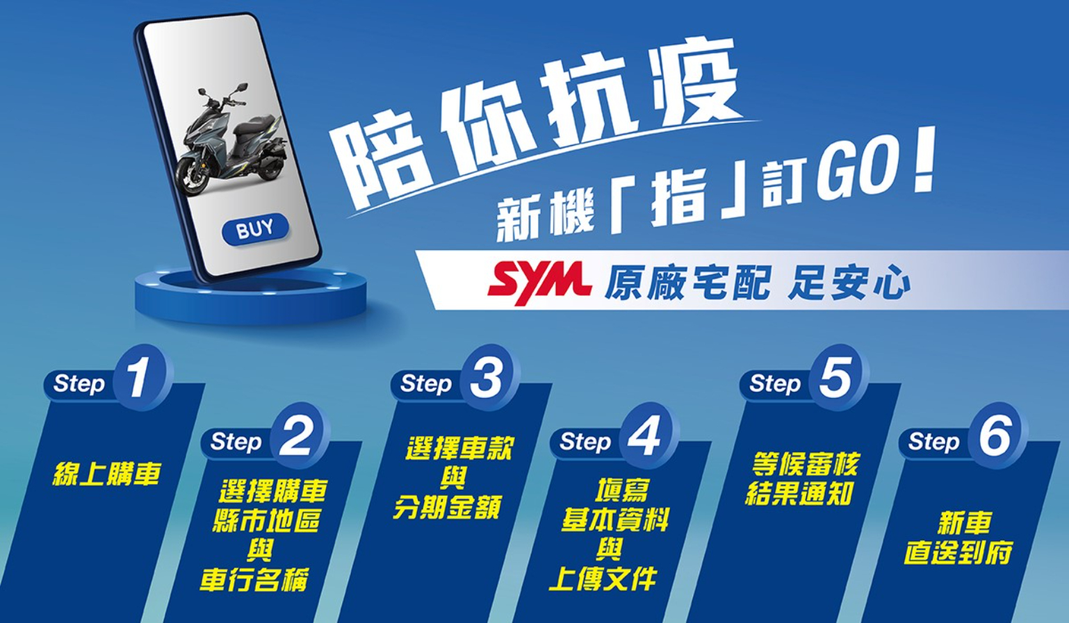 近期國內受COVID-19疫情影響,並回應政府呼籲減少外出及戶外群聚管制,三陽為持續服務廣大消費者,特別推出「SYM線上購車,直送到府」服務。SYM線上購車服務,提供消費者在SYM官網賞車後,消費者可直接線上完成購車及分期手續辦理,並依照SYM線上購車網站選擇購車地區及服務車行,上傳基本資料及相關文件,即可完成愛車訂購與分期手續辦理,SYM更提供貼心的新車直送到府服務,讓消費者免去外出染疫的風險,輕鬆一指,安心購新車!