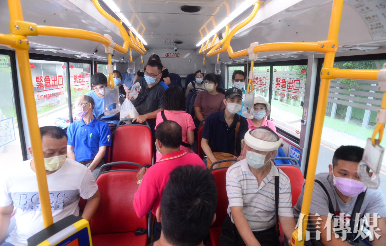 環南市場相關從業人員搭乘接駁車,準備前往醫院施打疫苗。(攝影/趙世勳)
