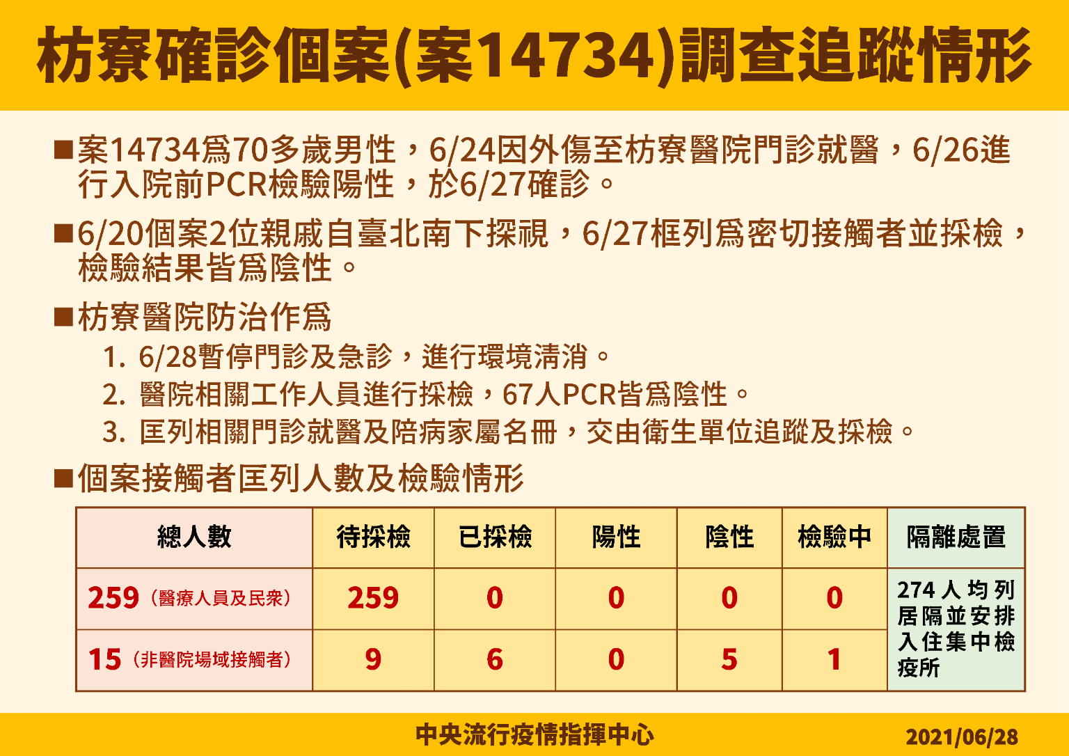 案14734目前尚未發現與屏東Delta病毒群聚的關聯,指揮中心謹慎應對。