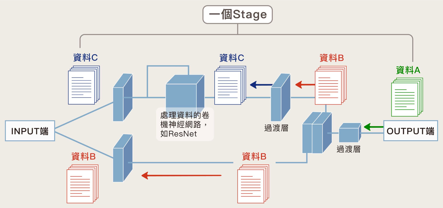 為了解決梯度消失問題,前人曾經提出 ResNet、DenseNet 等等卷積神經網路,簡單來說,即是將後面資料備份後往前「跳級」傳遞!以 ResNet 為例,我們可以想像成「含水傳話」,從最後一個人往前傳,愈前面的人資訊愈缺失。但如果最後一層開始,每一層都備份錄音,再把錄音跳過一層直接往前傳,那麼前面的所有層都可接收到資訊,前面網路層就不會學不到東西。