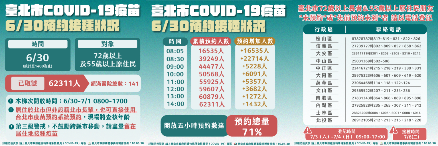 30日下午2時為止,北市已有6.2萬人預約施打疫苗,僅剩2.5萬個名額,柯文哲表示「可能大家對莫德納(Moderna)情有獨鍾」。