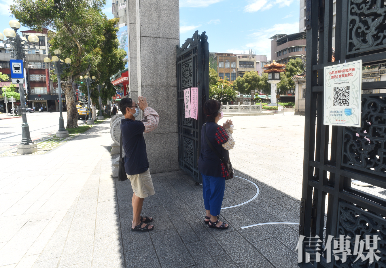 由於龍山寺站不開放民眾入內,信眾只得在門口參拜。(攝影/趙世勳)