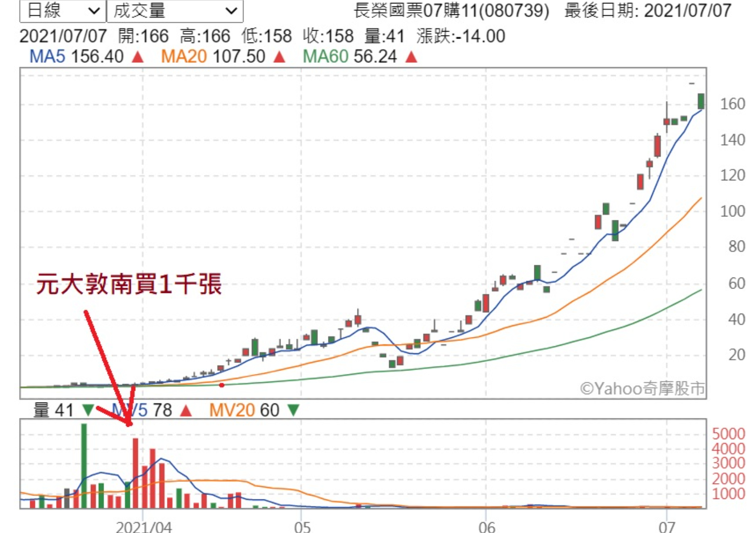 在長榮大跌之前,大戶的舉動似乎已有徵兆,在過去五個交易日中,大戶已經大量的出脫長榮的認購權證,例如元大證券敦南分點在6月30日到7月6日,已經出脫1.25億元的認購權證套現下車,其標的「長榮國票07購11」今年2月入手價格才不到2元,3月31日入手超過1千張,價位在3.72元,在這個月6日以172元出場,大賺超過1億元。過去五日內還有其他大戶賣出的長榮認購權證累計金額超過8億元。