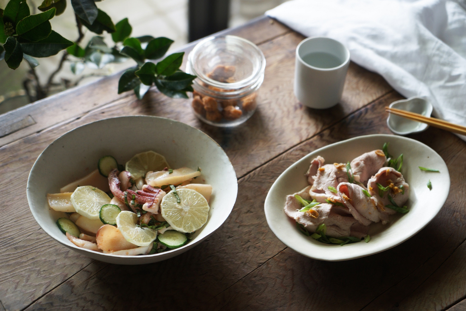 分享兩樣簡單的食譜,乍看是水煮料理,但拌開之後的風味,清爽有味令人愉悅,在夏日的居家期間,不僅開胃,也解除高溫帶來的疲倦感。