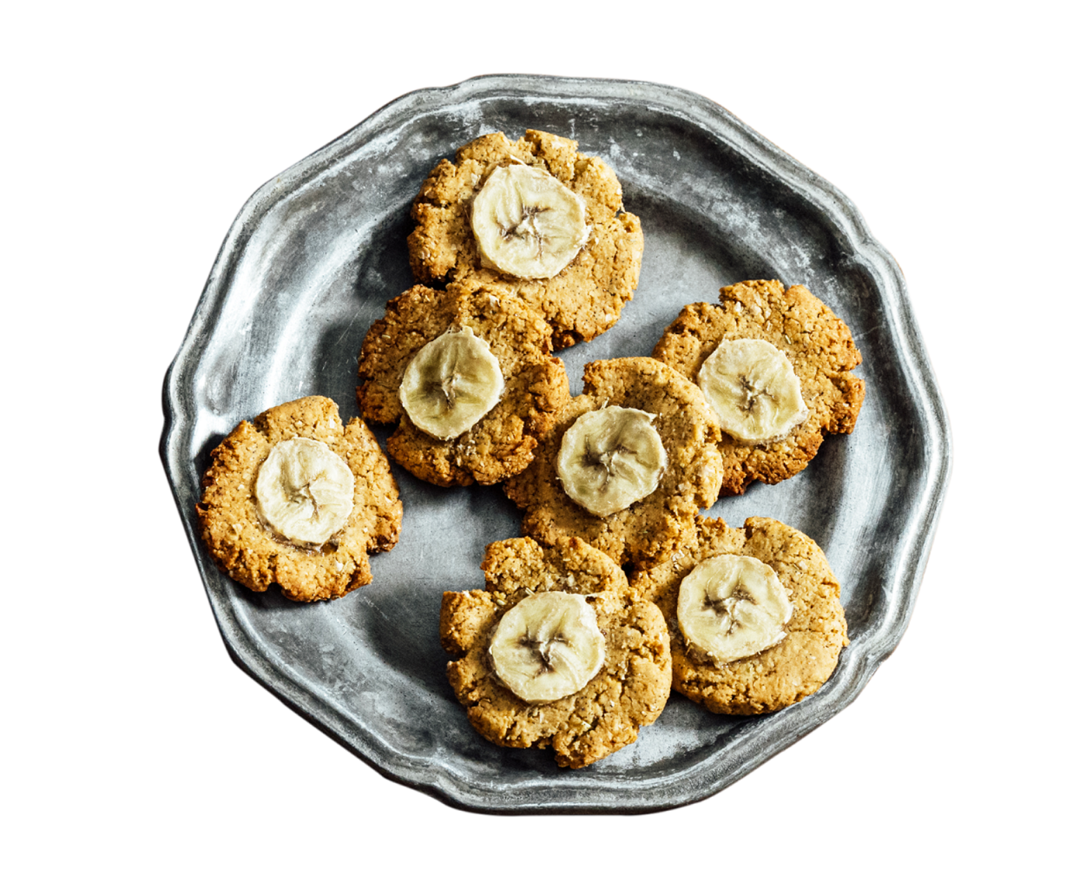 馮晏緹所示範的兩道點心,出自其食譜著作《無麩質的原味食材烘焙課》,第一道「迷迭香餅乾」,運用蒸熟鷹嘴豆和鷹嘴豆粉本身含有的蛋白質和水分,即可調出適合製餅的粉團,馮晏緹說:「鷹嘴豆可以在線上健康和農產品購物平台iHerb或上下游市集採買,若是無法取得也不用擔心,可以嘗試以不同豆類製作,會有不同的驚喜。」