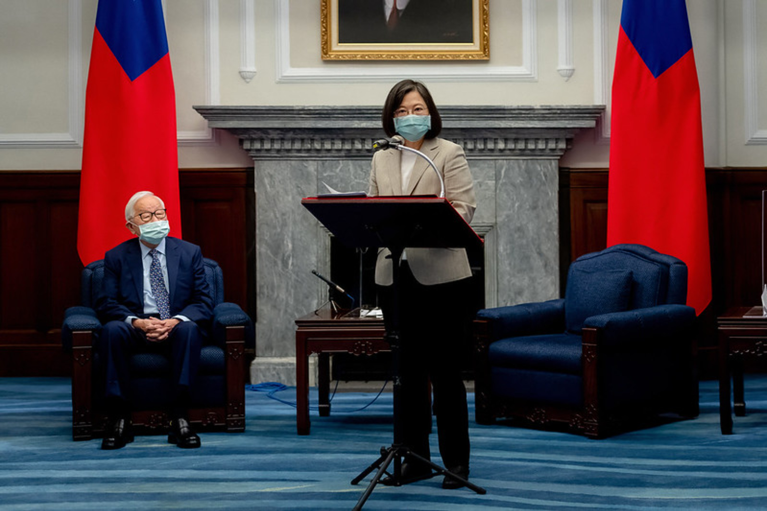 在今天的記者會上,包括國安會秘書長顧立雄、總統府秘書長李大維、經濟部長王美花都參與會議,蔡英文總統指出,張忠謀是台積電創辦人,在全球半導體產業中的地位,不需要她多做說明。過去幾年,他代表蔡英文參加APEC會議,針對區域經貿和產業發展,也有獨到的見解。這幾年全球供應鏈在變動,張忠謀的表現,不僅讓台積電成為世界一流企業,也讓台灣在國際舞台上發光發熱。