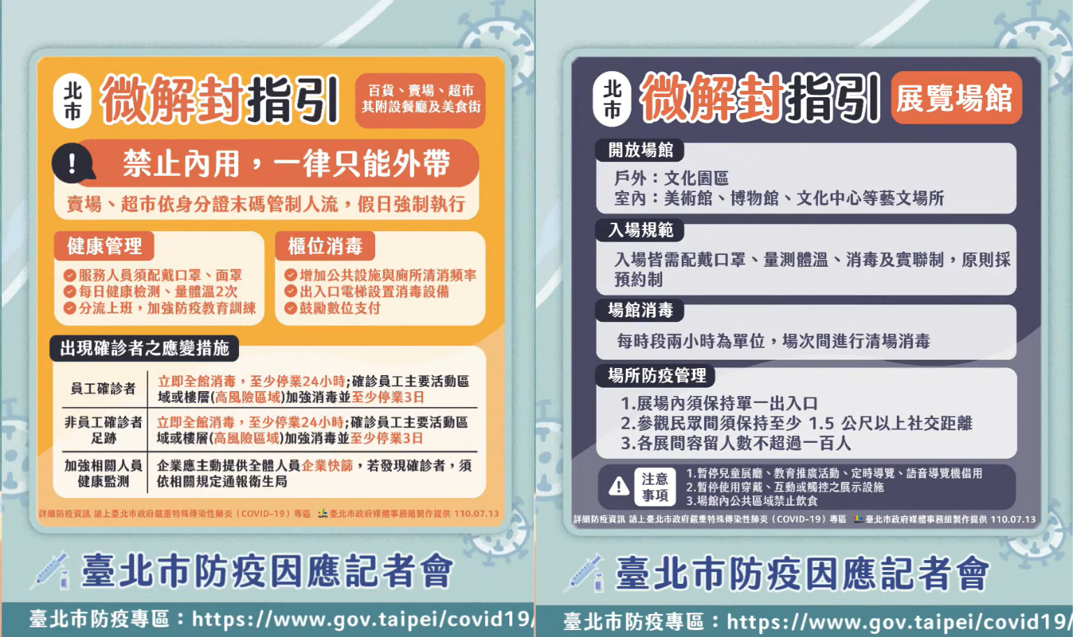 柯文哲指出,台北市的解封原則上不會一下子全部解開,而是慢慢放,尤其吃飯一定是擺最後,「所以..還是要跟餐廳、夜市說抱歉,雖然你們非常期待,但傳播危險還是比較高,還是要擺最後。」