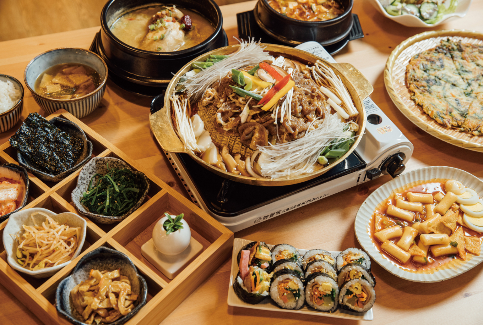 餐廳食材則由韓國媽媽親自到市場挑選掌控品質。「首爾銅盤烤肉」選用較薄的牛肉片醃漬入味,軟嫩滑順的牛肉,第一口就能嚐到銅盤烤肉美味的精髓,入口即化,滋味鮮甜;焦香酥脆的「韓式煎餅」中包含韭菜、洋蔥、蝦仁等配料,各種食材完美融合,讓人一片接一片;「牛肉大醬湯」特調湯頭風味獨到,店家推薦可以淋上白飯一起享用,美味無窮;以六宮格呈現的韓式小菜也是店家巧思,配色鮮豔亮麗十分搶眼,喜歡手繪的旅人,當然要將它收藏進畫本裡。