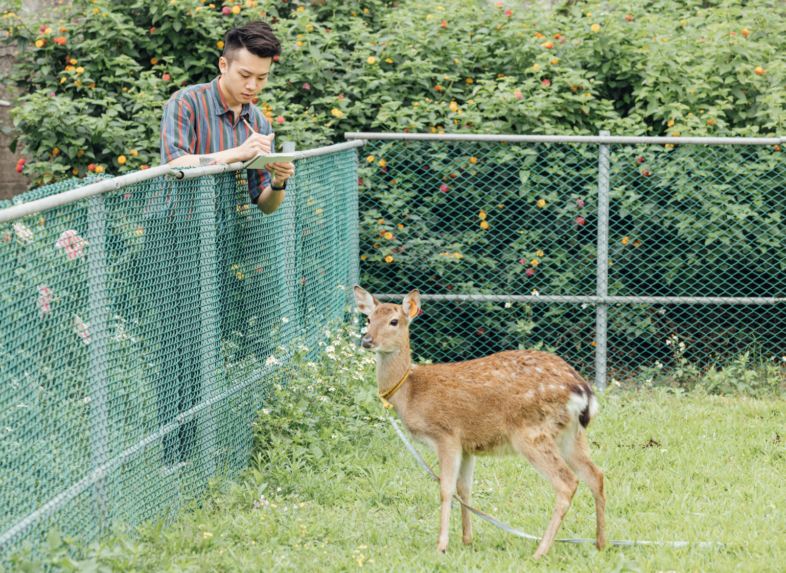 場長鄭文彬從爸爸疼愛孩子的角度,設計出系列體驗活動,希望透過親人可愛的小鹿,讓遊客享受與動物互動及親子共遊的樂趣。來到牧場,參加生動的鹿生態習性解說課程,親子一同學習生態知識;進行餵小鹿吃牧草或餵奶互動,與在戶外草坪自由走動的鹿群零距離接觸,也追趕跑跳碰;還可參加小鹿賽跑,學習與動物相處玩耍。活潑討喜的小鹿眨著萌萌大眼,給人滿滿的療癒感,趕緊拿出畫筆幫牠們寫生吧!