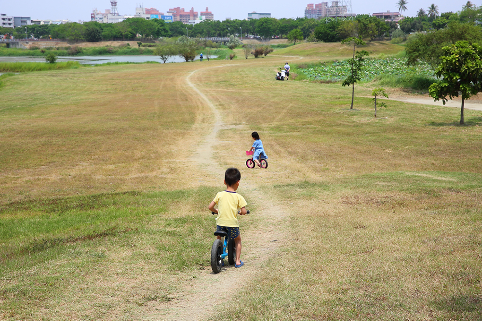 滯洪池B區環湖步道更是跑友們相當喜愛的親水跑線之一,步道一圈長度2.5公里,起伏平緩、空氣良好,對跑者而言,可以輕鬆地配速,和跑友邊跑邊聊天,繞著步道進行長距離慢跑,也適合新手入門準備「初半馬」。