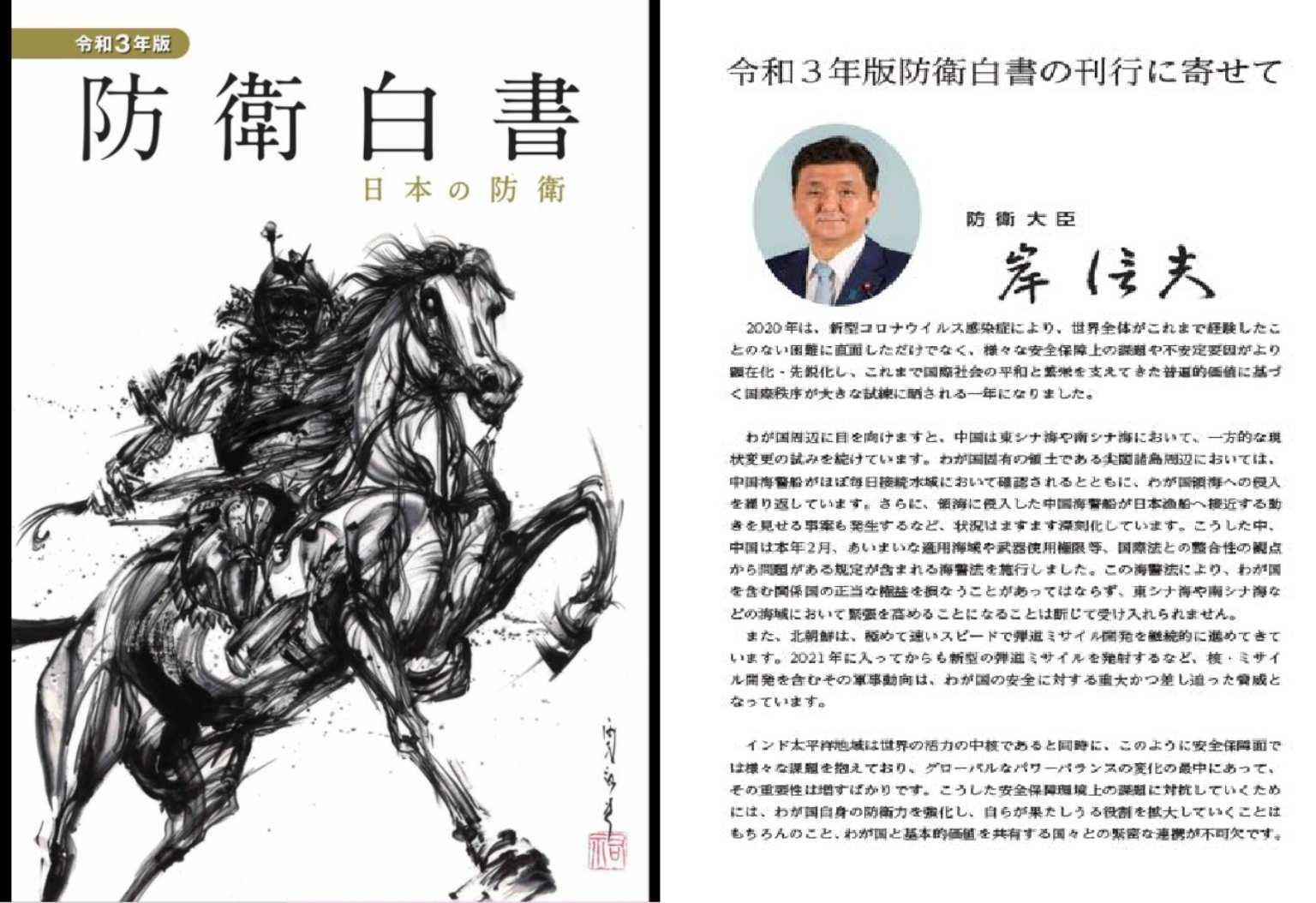 日本今年的《防衛白皮書》封面是鎌倉幕府末期到南北朝時期,號稱「軍神」的名將楠木正成,日本「每日新聞」報導,防衛省發言人僅含蓄稱,新版《防衛白皮書》封面是一名展現自衛隊力量和本國堅強防衛意志的戰馬武士,旨在向海外展示日本特色和「防衛白皮書」特有的「威嚴」。