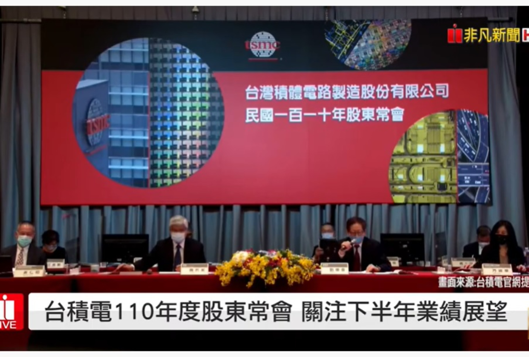 台積電股東會26日在新竹舉行,為防疫考量,採取嚴格措施,股東仍永遠出息,這次股東會主要的表決議案為董監改選,由於沒有任何市場派競爭,會中順利完成董事改選,包含4名董事和6位獨立董事,董事名單為台積電董事長劉德音、台積電總裁魏哲家、前台積電副董事長暨創意(3443)董事長曾繁城、行政院國家發展基金管理會主任委員龔明鑫。