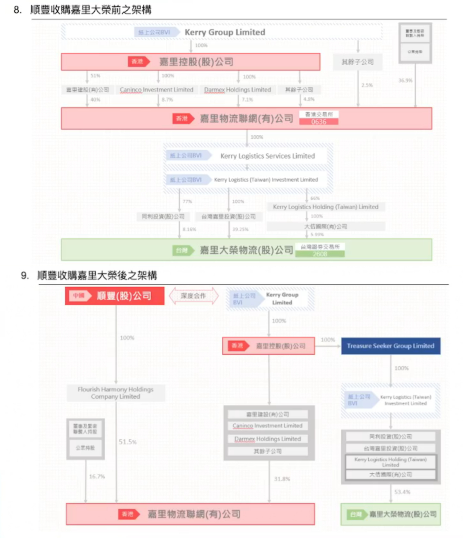 王婉諭指出,港商嘉里集團旗下的嘉里控股公司,配合中國順豐集團,透過港商Treasure Seeker Group公司(下簡稱Treasure)買下原本屬於嘉里物流聯網公司的台灣業務,也就是嘉里大榮53.4%的股權。