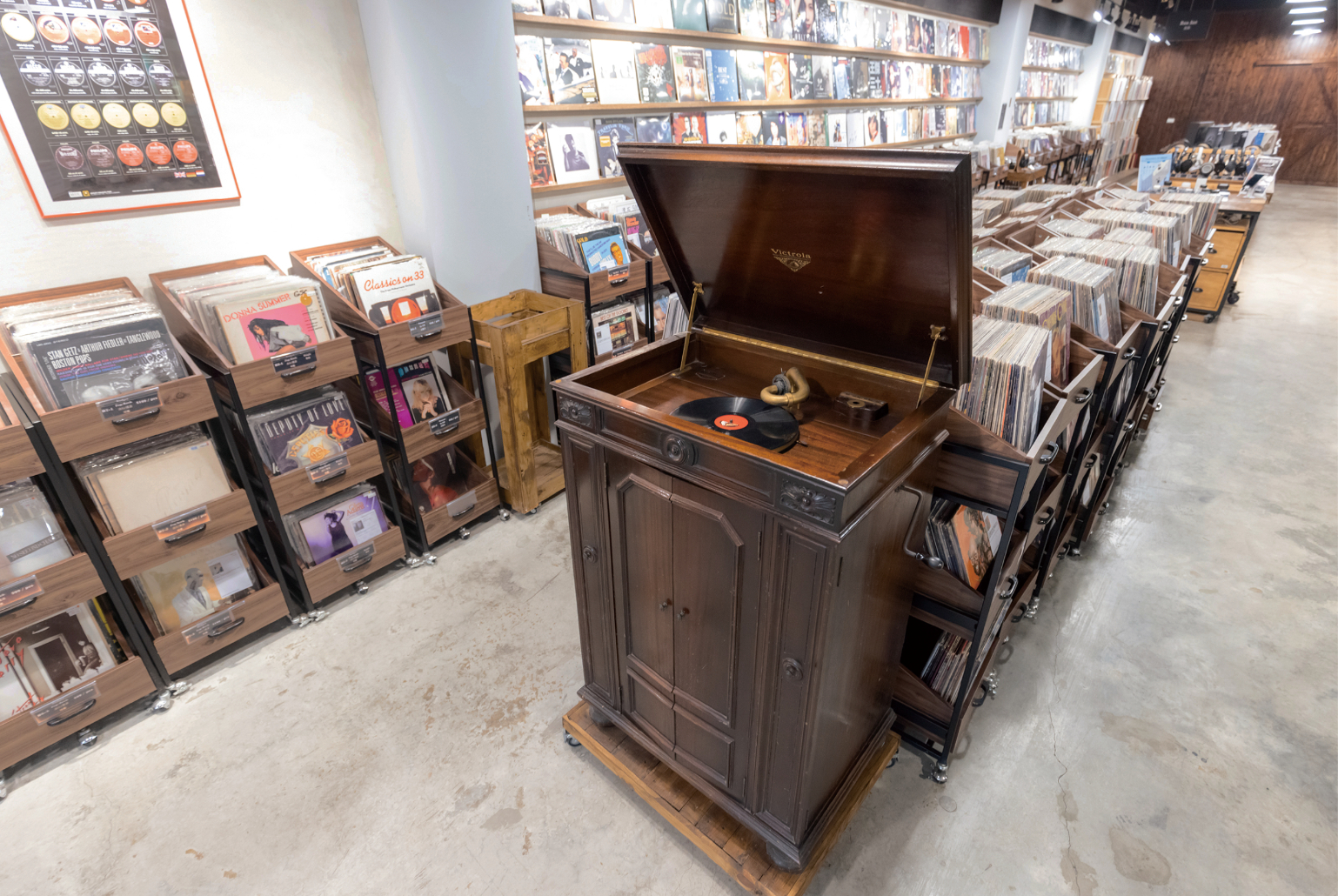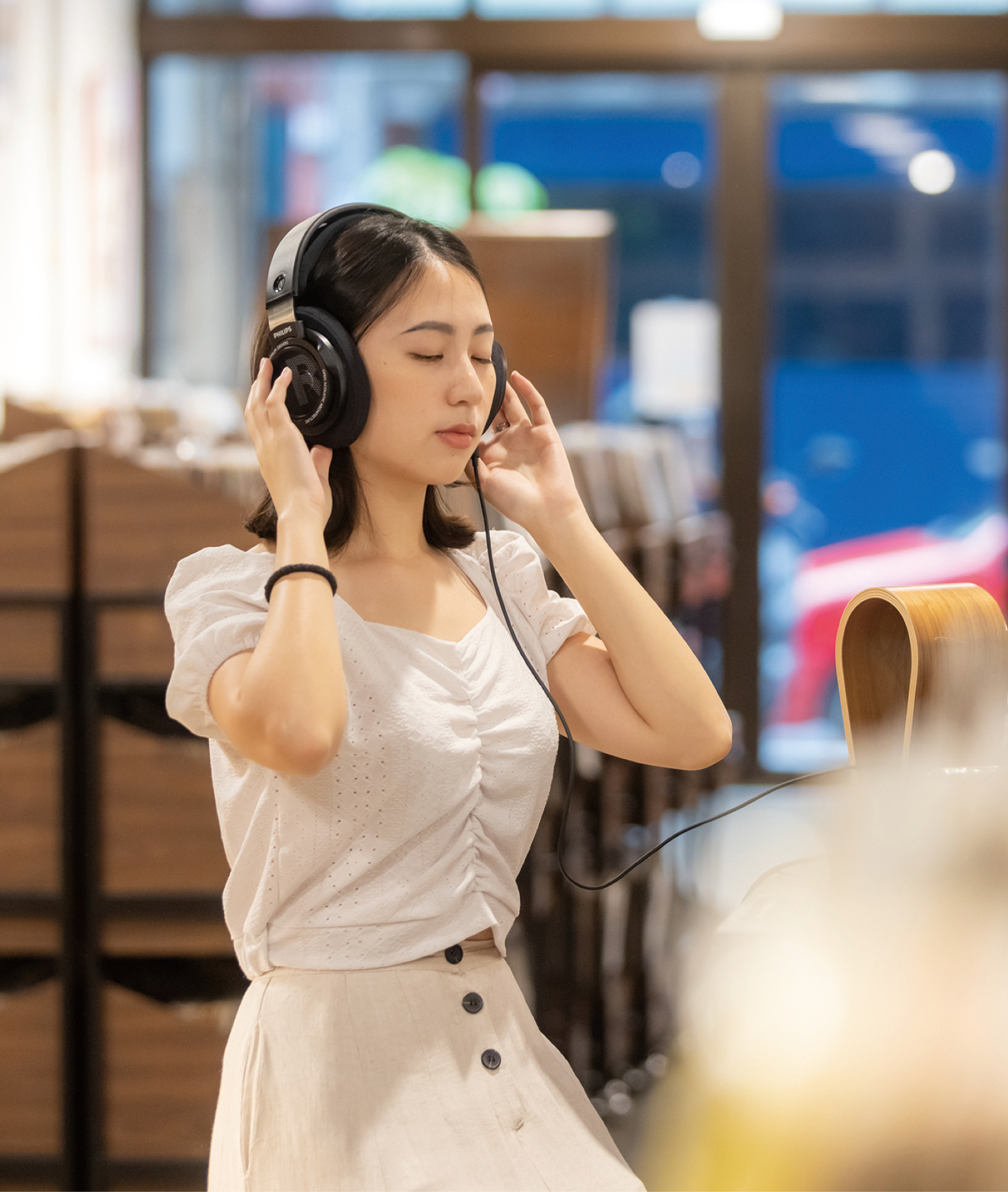 騎著腳踏車緩緩前往隱身民宅中的黑膠殿堂「張大韜黑膠耳機專賣店」。總監張鈞韜因為電玩而一頭栽進音樂世界,對於音色豐厚溫潤的黑膠情有獨鍾,從線上黑膠買賣,逐步成立實體黑膠體驗空間,至今店內藏有超過5萬張黑膠唱片,是不少愛好者購入黑膠的寶庫。