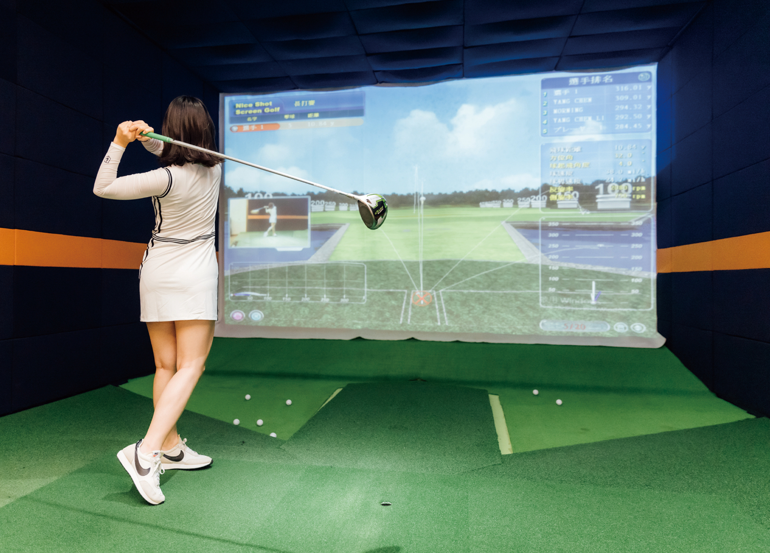 經理吳秀容表示,室內高爾夫球運用「Nice Shot 3D最新高球模擬系統」,可進行揮桿練習與18洞賽事體驗。帥氣揮杆將小白球打擊出去,超高速攝影機加上雷達偵測,眼前螢幕即時顯示影像並輔以實境音效;上果嶺後,還有模擬坡度起伏上下移動的地板、貼近真實球場的推杆模擬,系統也仿真沙坑、水池等實境,逼真程度之高,讓虛擬體驗也能帶來真實感受。對於高爾夫球初學者,圓石灘室內高爾夫俱樂部也推出教練課程,專業教學帶領大家在涼爽空間中,找到高爾夫球手感。